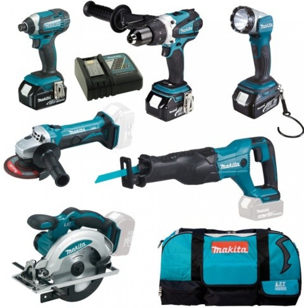 Rozsah dodávky:1x akumulátorová úhlová bruska DGA452Z 1x ??akumulátorová příklepová vrtačka DHP458Z 1x přímočará pila DJR186Z 1x akumulátorová svítilna DML802 1x akumulátorová okružní pila DSS610Z 1x akumulátorová příklepová vrtačka DTD152Z 3x akumulátor BL1830B 1x rychlonabíječka1x taškaMakita…