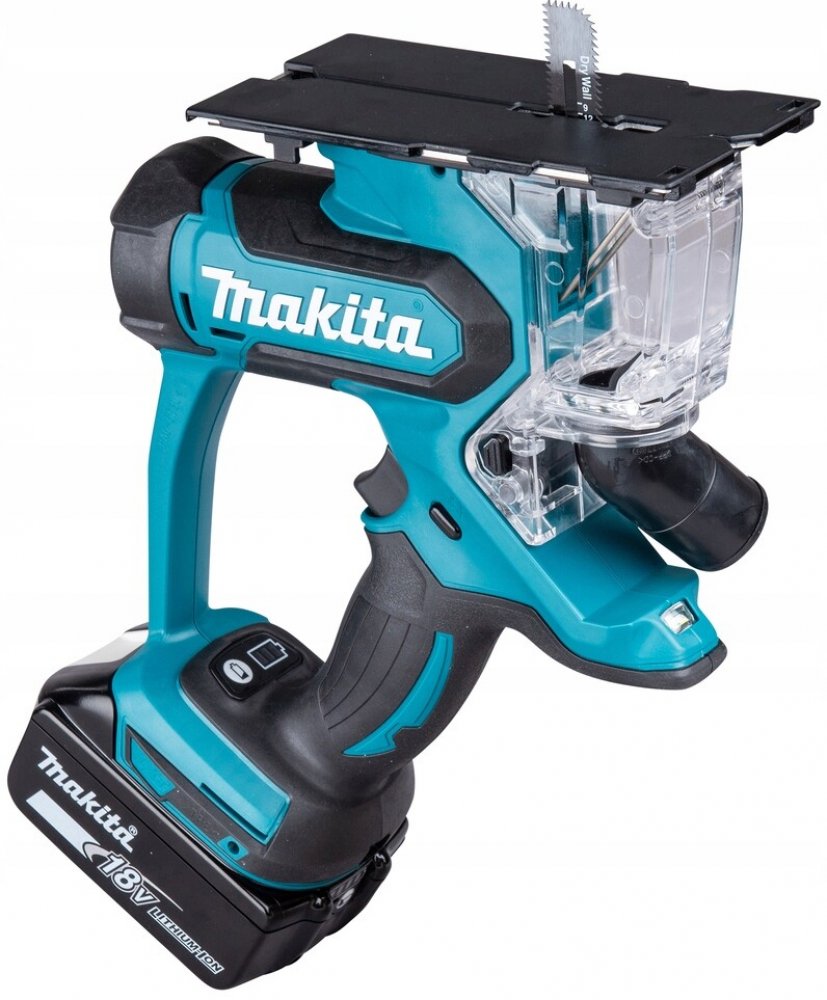 Aku pila na sádrokarton Makita DSD180Z umožňuje velmi rychlé přímé řezy v sádrokartonu nebo ve dřevě. Dokonale vyvážený stroj pro pohodlnou práci. Možnost nastavení hloubky řezu. Speciální plátky na sádrokarton a dřevo. Elektronický vypínač. Nádoba na prach uzpůsobená práci nad hlavou. Možnost připojení externího odsávání. Osvětlení pracovní plochy. Řezný výkon sádrokarton 30 mm.