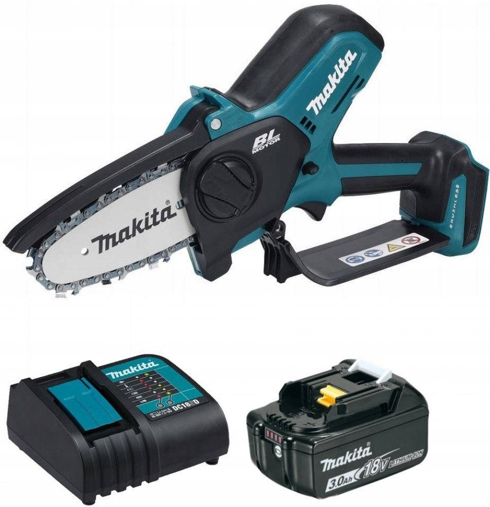 Makita vyvětvovací 18 V 2 kg akumulátorové 100 mm 320 W 8 m/s 18 V 3 Ah s 1 x 3,0 Ah 325 pro malé větve (do 15 cm) vhodné pro delší směny snadno přenosné (do 4 kg) se snadnou údržbou