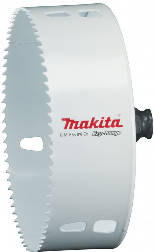 Vrtací korunka - děrovka Makita E-04058 pr. 140mm, BiM Ezychange, SDS-Plus nebo 1/4" Jen jeden rychloupínací adaptér pro všechny průměry ve výši 16-152 mm. To umožňuje velmi rychlou a bezpečnou výměnu centrovacích vrtáků a vrtacích korunek bez použití nářadí. Korunky jsou vhodné pro vyřezávání velmi přesných kruhových otvorů ve dřevě, plastech, hliníku, neželezných kovech, oceli nebo nerezovém ple...