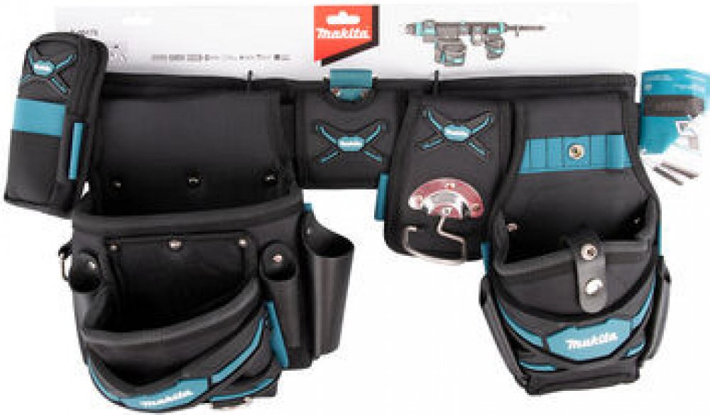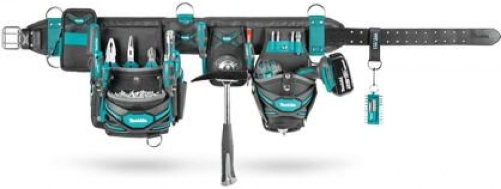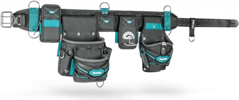 Sada super odolných opaskových pouzder s celkem více než 40 všestrannými držáky na nářadí a přihrádkami.