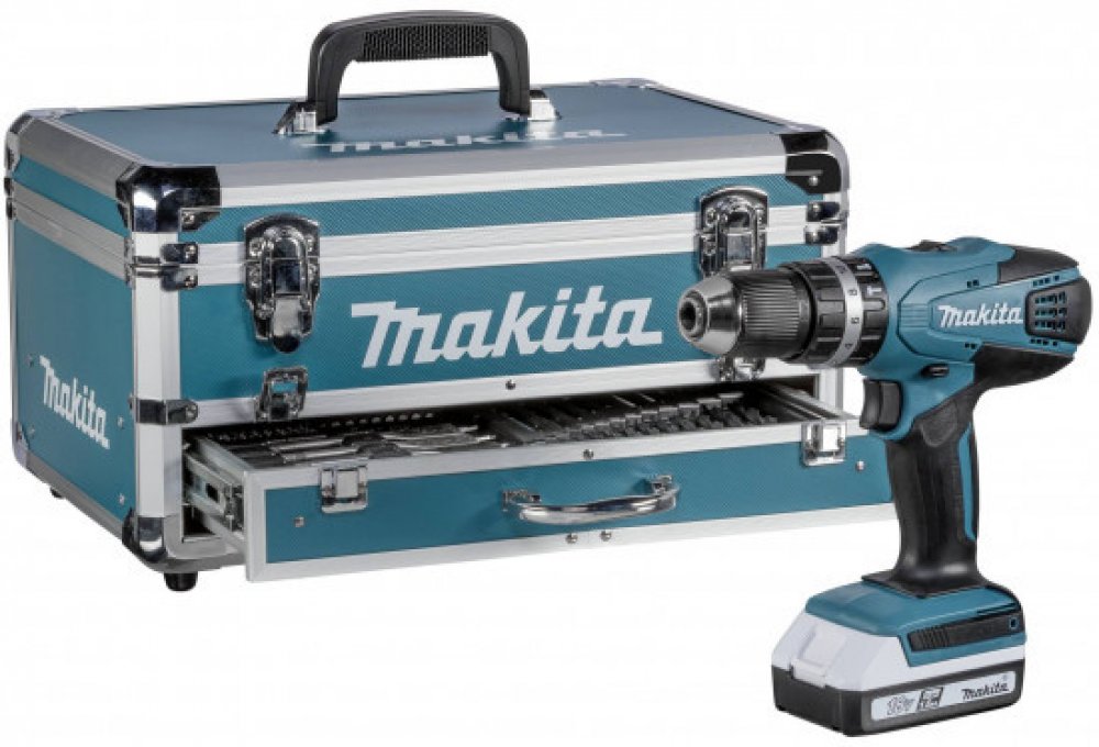 18 V/1.5 Ah;Li-Ion akumulátor akumulátor·Krouticí moment (max.) 42 Nm;Stupně točivého momentu 16 1x HP makita45 7DWEX4 LI akumulátorový příklepový šroubovák 18 V / 1,3 Ah · 2x baterie BL1815G 18 V, 1,5 Ah · 1x nabíječka DC18WA · 1x přepravní kufr · 1x 70 ks 81 ks příslušenství · 1x vložka · 1x magnetický držák bitů · 1x záhlubník · 10x bit 50 mm (PH1 / PH2 / PH3 / PZ1 / PZ2 / PZ3 / T25 / T30 / SL5,5 / SL6,5 ) · 20x bit 25 mm (PH1 / PH2 / PZ1 / PZ2 / PZ3 / PZ3 / T20 / T2 / T30 / T40 / H3/H4/H5/H6 / SL5,5 / SL6,5 ) · 6x vrták do dřeva ( 3 mm / 4 mm / 5 mm / 6 mm / 8 mm / 10 mm ) · 5x vrták do kamene ( 4 mm / 5 mm // 6 mm / 8 mm / 10 mm ) · 3x vrták do kov ( 1,5 mm / 2 mm / 2,5 mm / 3 mm / 3,5 mm / 4 mm / 4,5 mm / 5 mm / 5,5 mm / 6 mm / 6,5 mm / 7 mm / 8 mm ) · 3x ploché frézovací vrtáky ( 16 mm / 22 mm / 25 mm ) · 10x nástrčný klíč ( 5 mm / 5,5 mm / 6 mm / 7 mm / 8 mm / 9 mm / 10 mm / 11 mm / 12 mm / 13 mm ) · 1x šablona pro vrtání.