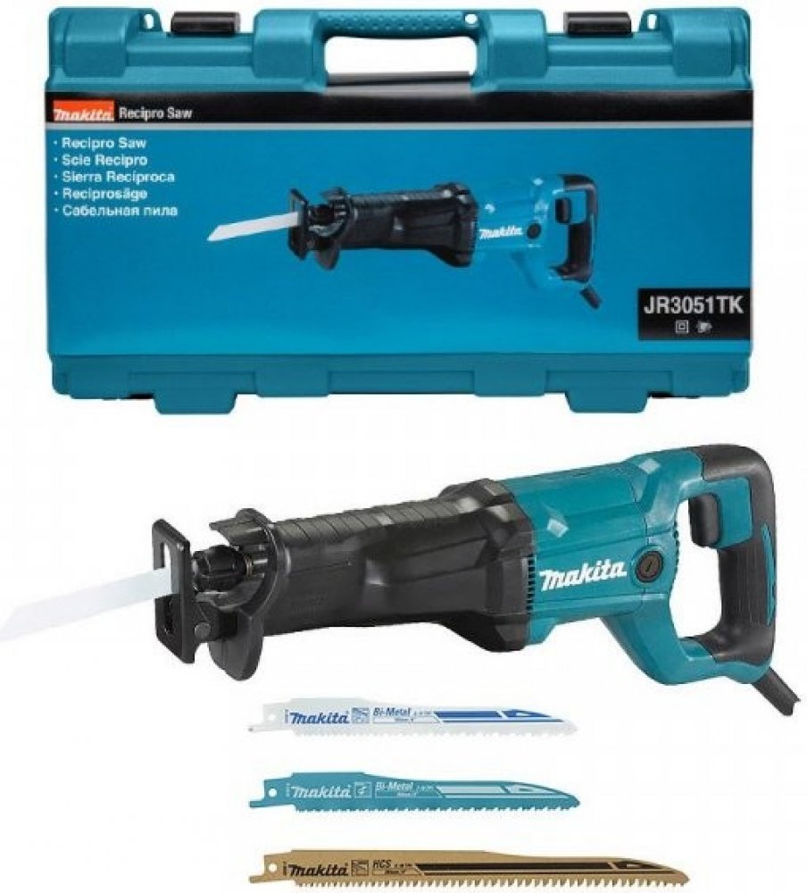 Přímočará pila Makita JR3051TK je vhodná pro rychlé řezání dřeva a kovu. Za tímto účelem může být vybaven různými pilovými kotouči, které lze vyměnit bez použití nářadí díky rychlovýměnnému systému SDS. Rychlost zdvihu lze variabilně regulovat integrovanou elektronikou otáček, což vede k práci specifické pro daný materiál. Pouzdro je navrženo tak, aby uživateli poskytovalo dobrý úchop a pohodlí i při dlouhé práci. Konstrukce ztěžuje vnikání prachu a stříkající vody, což má za následek delší životnost přímočaré pily.