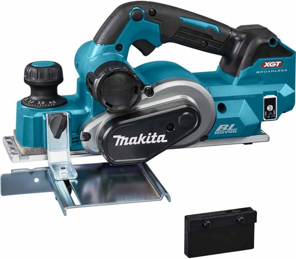 40Vmax - 82 mm Silný kartáč na baterie XGT®. Popis Makita KP001G je nářadí určené pro profesionály. Kompaktní konstrukce a dobrá rukojeť jsou navrženy tak, aby snižovaly únavu obsluhy. Akumulátorový systém automatického spuštění (AWS) se k vysavači připojuje pomocí Bluetooth. V základní výbavě nejsou baterie, nabíječka ani kufřík. Hoblík KP001G XGT® má dvoubřitou hlavu s oboustrannými karbidovými noži pro vyšší výkon a hladký povrch. Hloubku řezu lze nastavit jednoduchým otočením knoflíku na přední straně nástroje tak, aby ukazatel ukazoval na požadovanou hloubku řezu. Na obou stranách je rovněž umožněn výhoz třísek. Výhody pro uživatele Motor BL je elektronicky řízen, aby se optimalizovalo využití energie akumulátoru a prodloužila se doba provozu na jedno nabití. Gumový povlak na rukojeti zajišťuje pevné uchopení při práci Systém ochrany baterie automaticky vypne napájení při nízkém stavu nabití baterie Systém automatického bezdrátového spuštění (AWS) se připojuje k vysavačům kompatibilním s technologií Bluetooth® Technické specifikace Napětí XGT: 1 Jmenovité napětí baterie: 40 V Chemický složení baterie (Ni-Cd / Ni-MH / Li-ion): Li-ion Rychlost bez zátěže: 15000 min-¹ Šířka hoblování: 82 mm Maximální tloušťka třísky (hloubka hoblování): 0 - 4 mm Max. hloubka záběru: 25 mm Připraveno pro AWS: 1 Hladina akustického výkonu (LWA): 87 dB(A) Hladina akustického tlaku (LpA): 98 dB(A) Nejistota hluku (K-faktor): 3 dB(A) Hladina vibrací (3 osy): 4,3 m/s² Nejistota vibrací (faktor K): 1,5 m/s² Čistá hmotnost výrobku: 2,5 kg Hmotnost nářadí s baterií (EPTA): 3,7 - 4,9 kg Rozměry výrobku (d x š x v): 385 x 156 x 166 mm Ø připojení vysavače dovnitř / ven: 45/50 mm Bezkartáčový motor: 1 Další důležité vlastnosti Měkký start Elektrická brzda Sběr prachu Systém proti opětovnému spuštění Bezkartáčový motor Technologie nové generace Systém AWS Technologie extrémní ochrany XPT Základní vybavení 122695-0: Kalibrátor nožů o průměru 82 mm. 122785-9: Paralelní vedení typu D 342390-8: Hloubkový doraz 782209-3: Nástrčný klíč 9 Akumulátorový hoblík MAKITA 40V max. (bez akumulátoru, bez nabíječky) | Číslo výrobce: KP001GZ | EAN: 0088381762243 | Typ produktu: Akumulátorový hoblík | Výkonný akumulátorový hoblík s pohonem 40V max. Vysoké otáčky hoblovací hřídele pro optimální výsledky při tichém provozu. S rozhraním AWS pro volitelné použití AWS. Šikovné zařízení pro opracování například interiérových dveří, panelů a soklových lišt. Jednoduché a přesné nastavení úběru třísek pomocí velkého otočného knoflíku. Přední základní deska je odpružená, aby chránila nože a obrobek. - Bezdrátový systém Auto-Start (AW) navazuje spojení s vysavačem prostřednictvím Bluetooth | Kategorie: Akumulátorové nářadí > Akumulátorový hoblík Bez baterií a nabíječky, v krabiciPohodlné používání díky ergonomické rukojeti s měkkým držadlem.Parkovací držák na patce chrání hoblovací dláta a obrobek při "odbočování" hoblíku.Vybaveno knoflíkem pro nastavení hloubky s vysokou přesností 0,1 mm.Delší práce díky oboustranným HM dlátům, která lze použít oboustranně.Odběr třísek možný na obě strany. akumulátorový hoblík XGT 40 V Max s maximální hloubkou hoblování 4 mm. možnost lámání hran díky třem V-drážkám v patce 1,4, 3 a 4 mm. připraven pro systém Auto-start Wireless System (AWS) pro bezdrátovou komunikaci mezi akumulátorovým strojem a akumulátorovým vysavačem. Volitelná jednotka AWS WUT01 je k dispozici jako příslušenství. vybaven elektronickou brzdou pro optimální bezpečnost. vhodný pro hoblování vroubků do 25 mm. vybaven BL motorem, který udržuje konstantní rychlost stroje. Makita KP001GZ - Elektrický hoblík - akumulátorový - 40 V