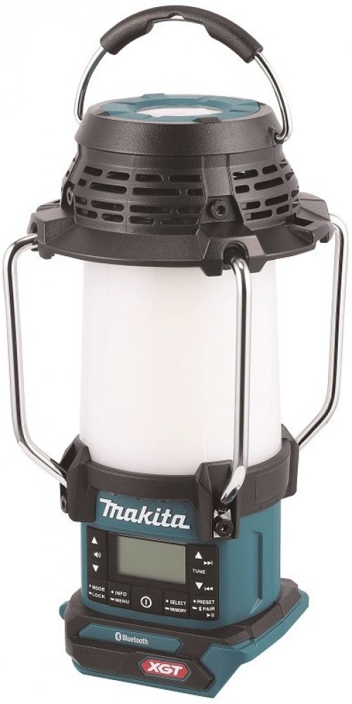 Praktické rádio s LED svítilnou Makita MR009GZ XGT bez aku pro pro akumulátory Li-ion XGT 40V Pro tento model jsou použitelné akumulátory XGT s kapacitou 2, 2,5, 4 a 5 Ah. Rádio umožňuje příjem signálu FM + digitálního signálu DAB a DAB+ Možnost připojení externího zdroje pomocí technologie Bluetooth verze 5.0 Technologie XPT umožňující použití v prostředí se zvýšenou prašností nebo vlhkostí Digitální displej Možnost nabíjení externího přístroje pomocí USB (2,4 A) Pogumovaní stroje jako ochrana proti poškození Maximální výkon rádia je 3 W Vysoká intenzita svícení 310 lm díky 20 LED diodám Možnost volby 3 odstínů osvětlení - denní světlo 5.000 K/ neutrální bílá 3.500 K / teplý odstín bílé 2.500 K Možnost přepnutí na bílou LED diodu na horní straně pro přímé světlo Až 47 hodin svícení nebo 14 hodin svícení s rádiem na jedno nabití akumulátoru BL4040 Součástí dodávky Makita MR009GZ XGT bez aku. Pás s háčkem pro zavěšení (SE00001178) Dodáváno bez aku a nabíječky