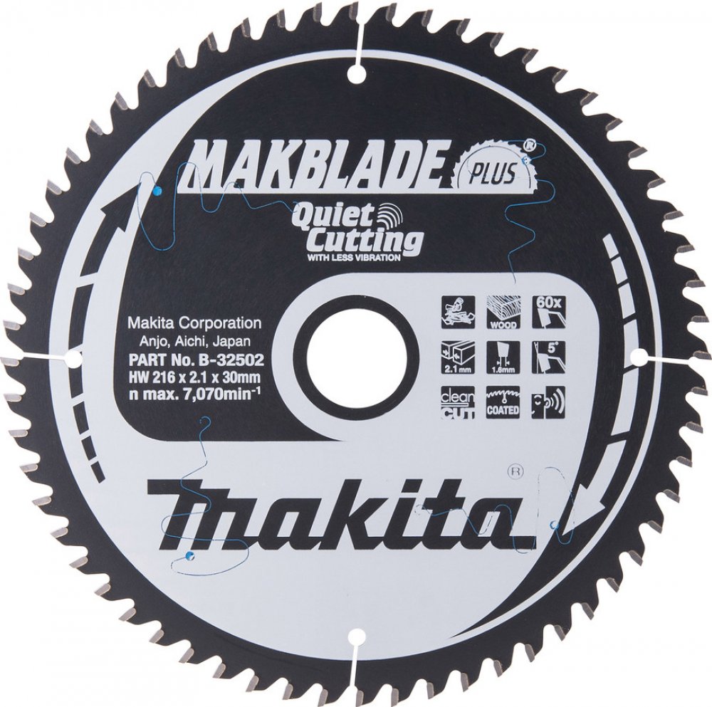 Pilový kotouč na dřevo pro pokosové a stolní pily Makita B-08676 MAKBLADE Plus, 216x30mm, 60 zubů