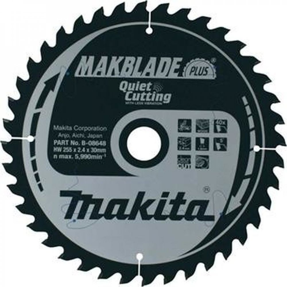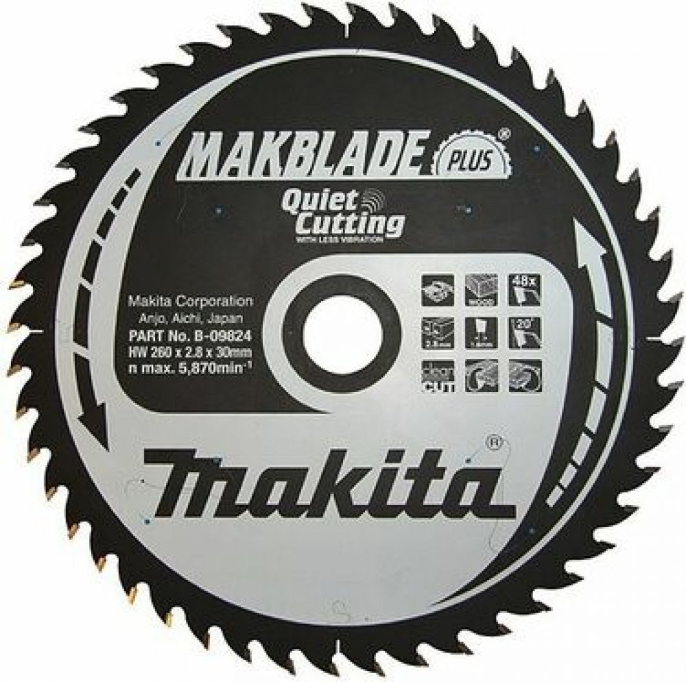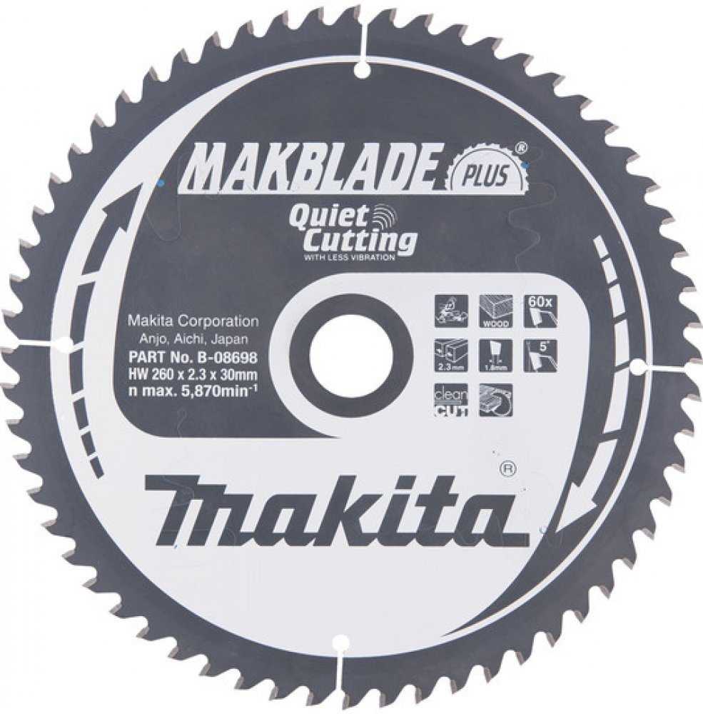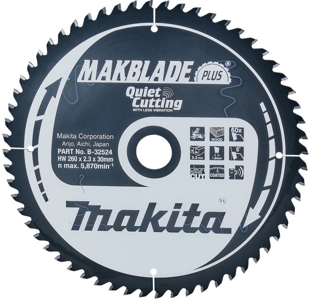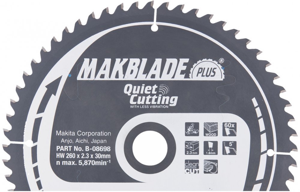 MAKBlade PLUS = Pilové kotouče pro pokosové a stolní pily mají jedinečnou patentovanou technologii. Tyto kotouče jsou vyvinuté k pohlcení vibrací a velice tichému chodu. Mají vlastnosti zlepšující pracovní prostředí, životnost kotouče a spolehlivost celého zařízení. Kotouč s menšími vibracemi zajistí přesnější vedení řezu a také snižují házivost. Výsledným efektem je ideální řezná plocha. Také má za důsledek významně delší životnost zubů z karbidu wolframu překračující životnost konvenčních pilových kotoučů s karbidovými hroty. Přesné vyztužené kotouče s plošším ostřím a rovnějším řezem. Povrchová vrstva s velice malým třením znamená řezání bez námahy a ochranu před korozí. Nízké vibrace díky antivibrační laserem řezané drážce. Povrchová vrstva s velmi malým třením. Hlučnost pilového kotouče je jednou z hlavních nepříjemností na pracovišti. MakBlade Plus zajišťují méně hlučné pracovní prostředí.