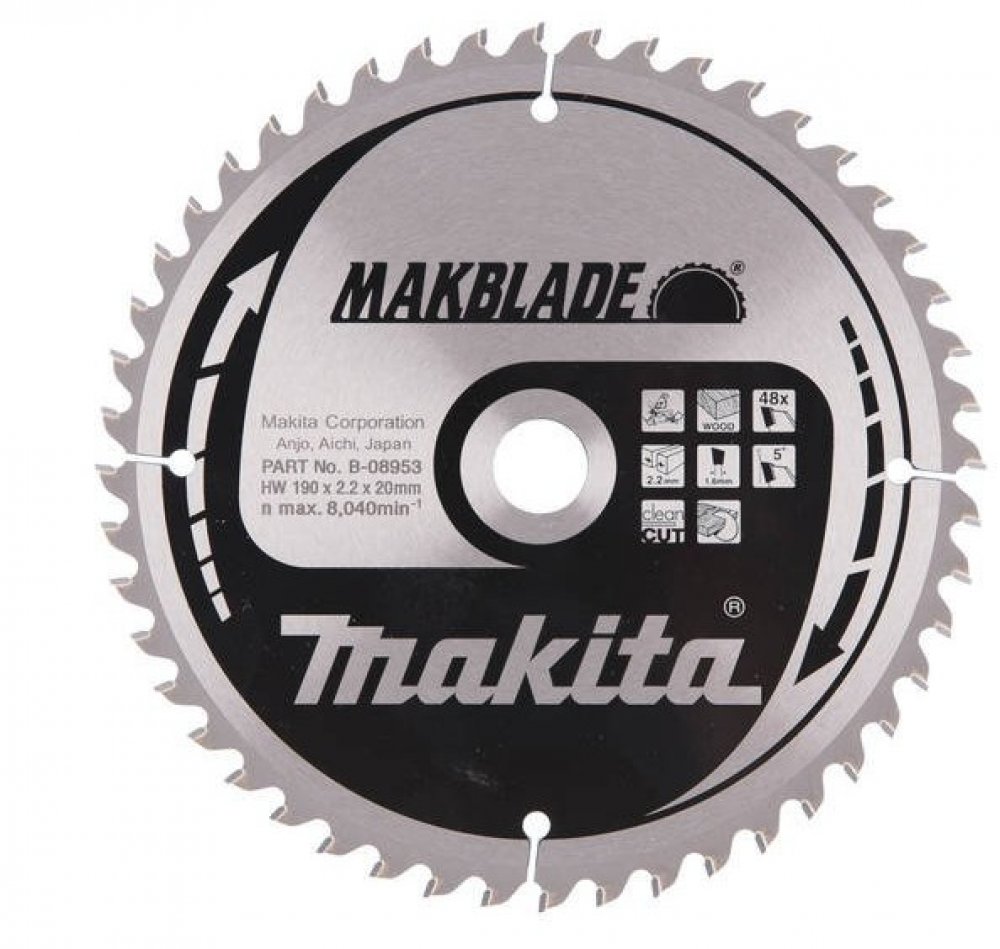 Makita pilový kotouč MAKBLADE 305x2,3x30 Z100. Pilové kotouče Makita MAKBLADE je možno použít pro všechny značky a modely pokosových, stolních a ponorných pil. Bohatý výběr velikostí od 190 mm–305 mm a počtu zubů od 24 do 100 pokrývá možnosti použití od hrubých řezů až po práce se zvlášť jemnou povrchovou úpravou. Tvrzené a vyztužené kotouče absorbují rázy. Přesné a ostré kotouče s dlouhou životností. Úzká řezná spára s menším množstvím odpadu a nízkým vodícím tlakem. MENŠÍ NÁMAHA - Úzká řezná spára snižuje namáhání během práce a prodlužuje předpokládanou životnost stroje i pilového kotouče. DLOUHÁ ŽIVOTNOST - Prvotřídní zuby TCT, pomalé opotřebení.