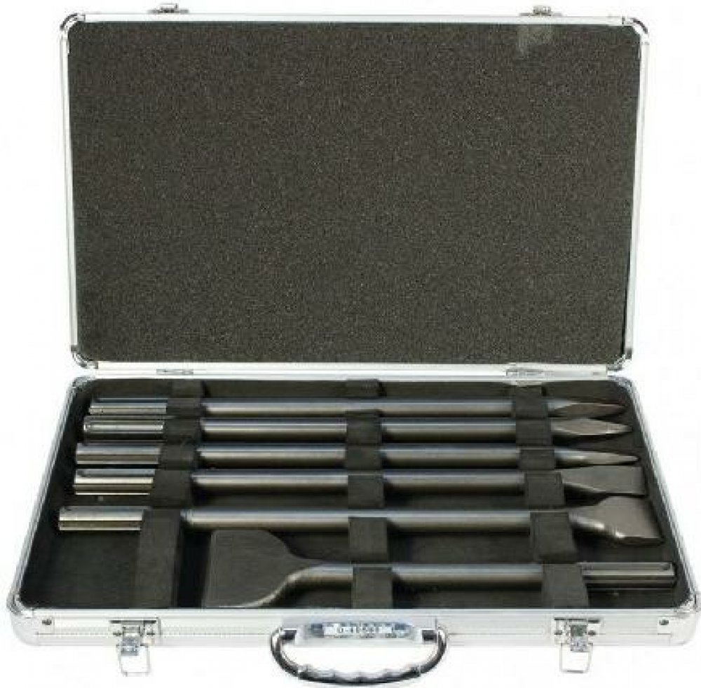 Sada sekáčů a špičáků SDS-max 6 ks (400 mm: 2x špičák, 2x plochý 25 mm, 1x plochý 50 mm, 1x plochý 300 x 80 mm).