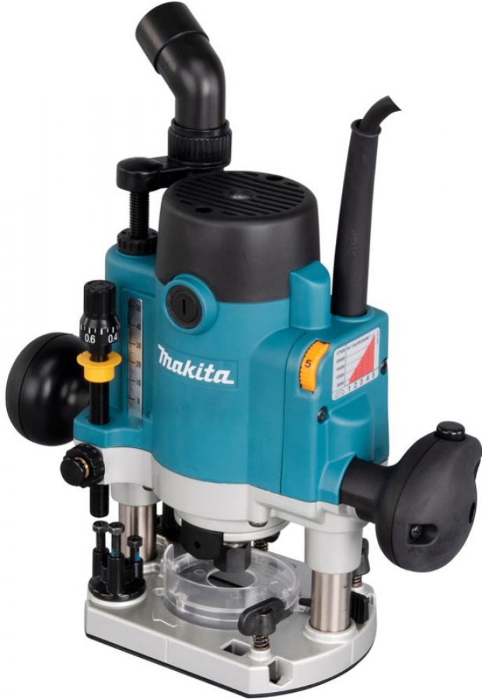 This compact router is equipped with a powerful 1,100 W motor and is suitable for router bits with 8 mm shank diameters.