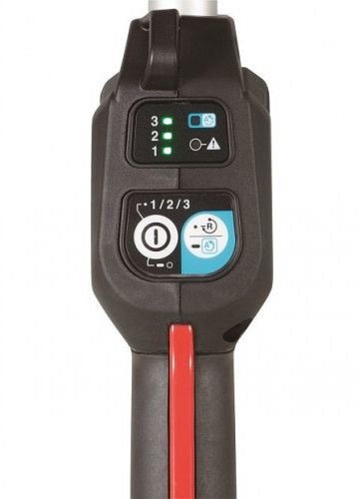 Stroj je vybaven spolehlivým bezuuhlíkovým motorem, který umožňuje delší použití na jedno nabití akumulátoru, a technologie ADT (Automatické Digitální Nastavení) automaticky přizpůsobuje počet otáček podle aktuálních pracovních podmínek. V případě náhlého poklesu otáček spustí elektronický systém AFT, který okamžitě vypne motor, čímž zvyšuje bezpečnost práce.