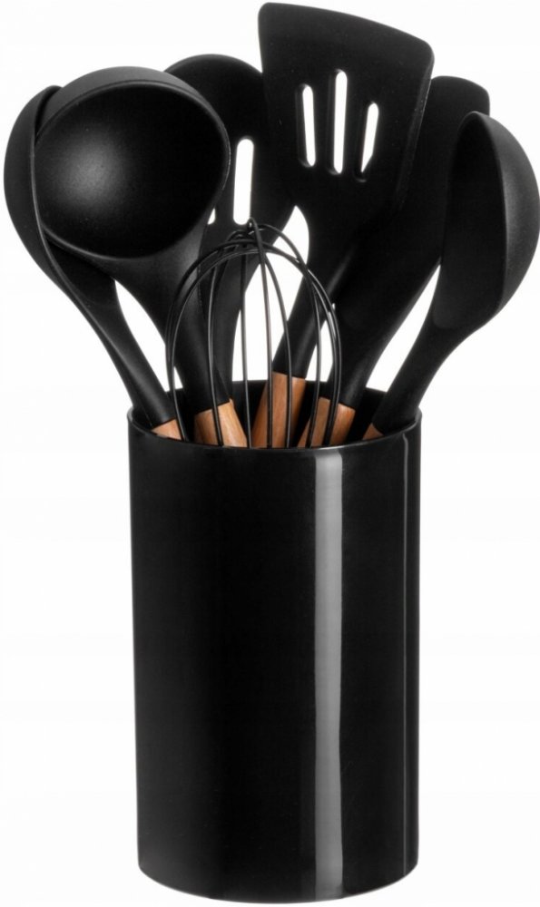 - Praktická nádoba: V sadě se nachází elegantní nádoba, která usnadňuje skladování doplňků a udržení pořádku v kuchyni. Díky tomu jsou všechny nástroje vždy po ruce a snadno k nalezení.
