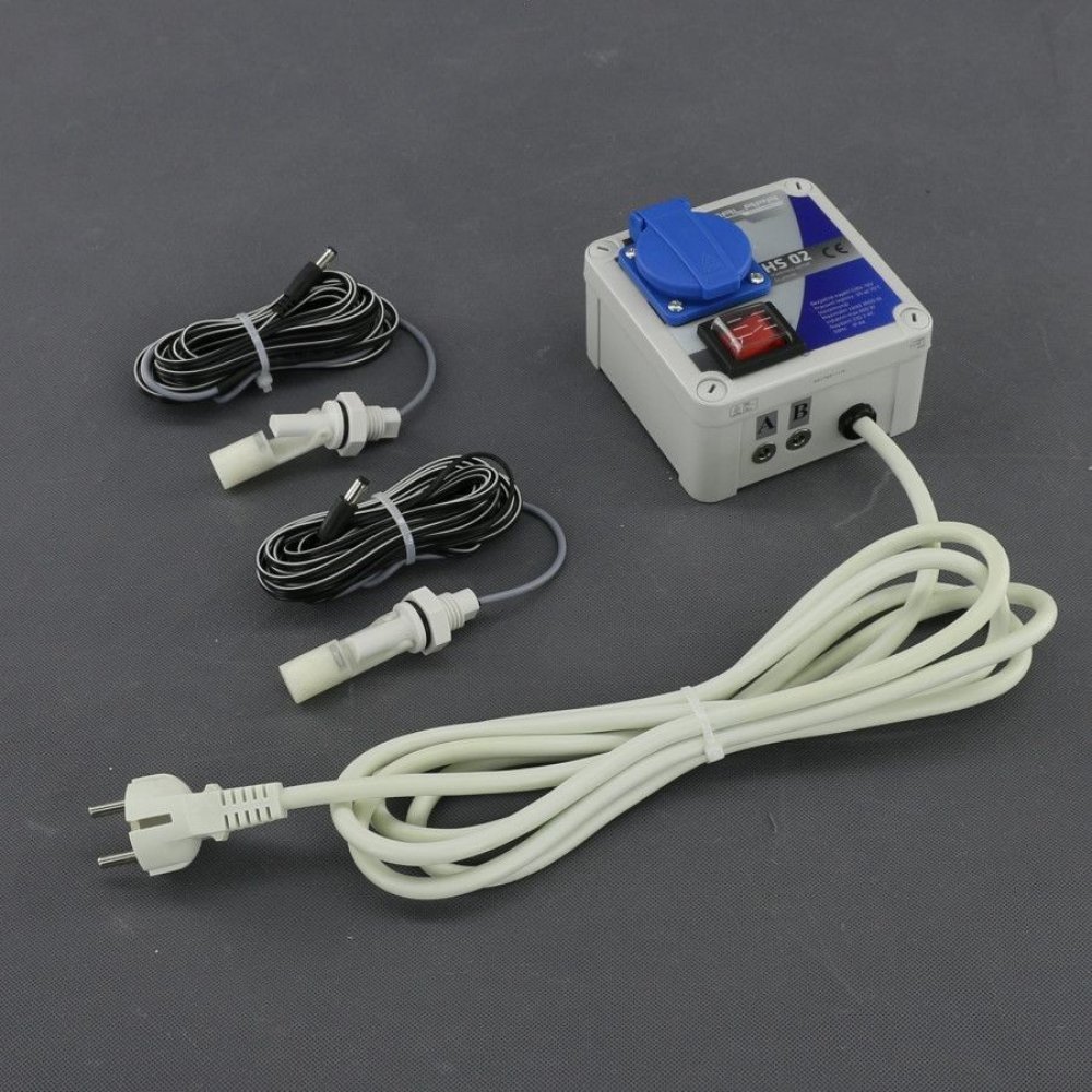HS02, hladinový plovákový spínač, bezpečný (2x plovák)Kompletní hladinový plovákový spínač slouží k bezpečné kontrole a hlídání hladiny kapalin. Plovákový spínač zapíná a vypíná např. čerpadlo při vypouštění nebo napouštění nádrže s kapalinou pomocí dvou plovákových spínačů. Plovákový spínač se dá využít i jako ochrana čerpadel před chodem na sucho/ na prázdno. V závislosti na poloze plováku se dá spínač využít pro doplnění nebo odpouštění kapalin, tzn. hlídá horní nebo spodní úroveň hladiny. Při napouštění spodní plovák čerpadlo sepne a horní plovák čerpadlo vypne. Při vypouštění horní plovák čerpadlo sepne a spodní plovák čerpadlo vypne. Hlavní vypínač. Pracovní napětí 230 V AC. Zátěž (spotřebič) do 3 000 W. Plovákový spínač je galvanicky oddělený od elektroniky přístroje. Systém pracuje s bezpečným napětím. Závitové připojení M 16. Plovák je vyrobený nezávadného polypropylenu, může přijít do styku např. s pitnou, užitkovou, slanou/ mořskou vodou, zředěnými kyselinami, oleji, alkoholem, barvivy a ropnými produkty... Kabel pro plovák ukončený konektorem dlouhý 5 metrů. Okamžitá instalace, jednoduše se zapojí mezi elektrickou zásuvku a spotřebič. Přívodní napájecí kabel ukončený vidlicí dlouhý 3 metry. Pro připojení spotřebiče zásuvka. Montáž na plochu, stěnu (závěsné úchyty). Ve fotogalerii produktu najdete schéma zapojení výrobku. Na přání lze dodat i jiné varianty, například jinou délku kabelu, jinou délku kabelu čidla, výkon.technické údaje HS02: napětí - 230 V AC 50 Hzzátěž odporová - do 3 000 W (13 A) zátěž indukční - do 460 W (2 A) plovákový spínač: počet - 2x materiál - polypropylen rozsah pohybu - do 40 ° přívodní kabel k čidlu - cca. 5 metrů připojení - M 16 rozměry - ⌀ 22 mm, délka 88 mm pracovní teplota - od -30 °C do +110 °C (nezámrzná) vypínač hlavní - ano přívodní šňůra ukončená vidlicí - 3 metry montáž - na plochu, stěnu (úchyty)celková váha - 1 120 gramů rozměry - délka 110 mm, šířka 110 mm, výška 60 mm pracovní teplota - od -20 °C do +70 °Cpracovní vlhkost - od 0 %RH do 90 %RH (nekondenzační)skladovací teplota - od 0 °C do +45 °Ckrytí - IP 44 materiál - ABS RoHSZa případné chyby v textu nebo obrázcích se předem omlouváme, vyhrazujeme si právo změny.