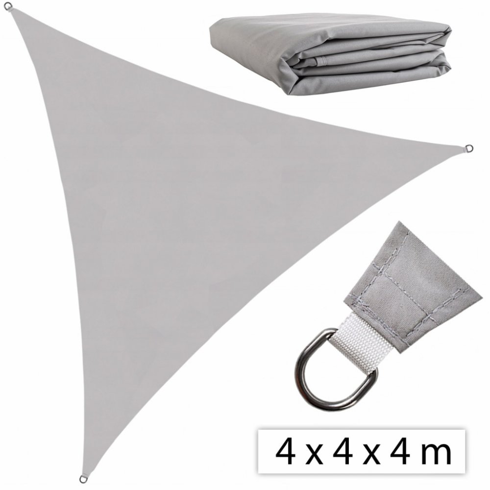 Plachta proti slnku 4 x 4 x 4 m, šedá Jednoduchá a praktická varianta klasického slnečníka alebo markízy. S tieniacou plachtou vytvoríte ľahko a rýchlo tienisté miesto na terase, v záhrade alebo na balkóne. Plachtu môžete napnúť podľa potreby, pojme až 90% UV žiarenia. Plachta je vodotesná a je odolná voči plesniam. Polyetylénová tkanina zaisťuje optimálnu cirkuláciu vzduchu. Pre jednoduchú montáž je plachta v rohoch opatrená okami z nehrdzavejúcej ocele. Kúpte si tieniacu plachtu a užite si príjemné posedenie vonku aj za prudkého slnka. Technické špecifikácie:Hmotnosť: 1,2 kg Materiál: Polyester 180g / m2 Uchytenie: kovové oká Rozmery: 4 x 4 x 4m Farba: šedá Obsah balenia:1 x Plachta proti slnku 4 x 4 x 4 m, šedá 3 x Šnúrka na uchytenie