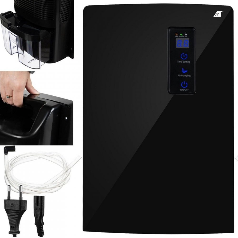- SPECIFIKACE - Černá barva; materiál: ABS+ hliník + AS+ PVC; účinnost: 600 ml za den; objem nádržky na vodu: 1500 ml; Funkce "Defrost" - automatické odmrazování vnitřního prvku odvlhčovače; schopnost pracovat při nízkých teplotách; časovač; možnost vypouštění vody hadicí: ano; napětí: 220-240V; výkon: 90W; automatické vypnutí po naplnění nádrže: ano; provozní režim: založen na systému Peltier; Vhodné pro: domov, kancelář atd.; vyjímatelná nádrž na vodu: ano; odnímatelný kryt nádrže na vodu: ano; rozsah 30m2; rozměry: 36 x 24 x 13cm; délka hadice: 100cm; délka kabelu: 1,2 m; hmotnost: 2 kg; hmotnost balíku: 2,372 kg.