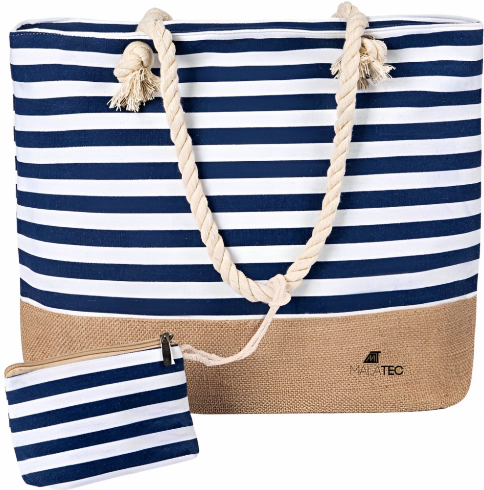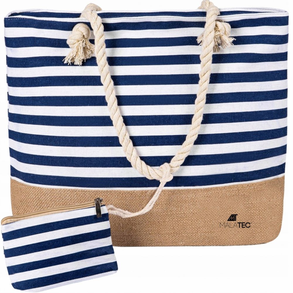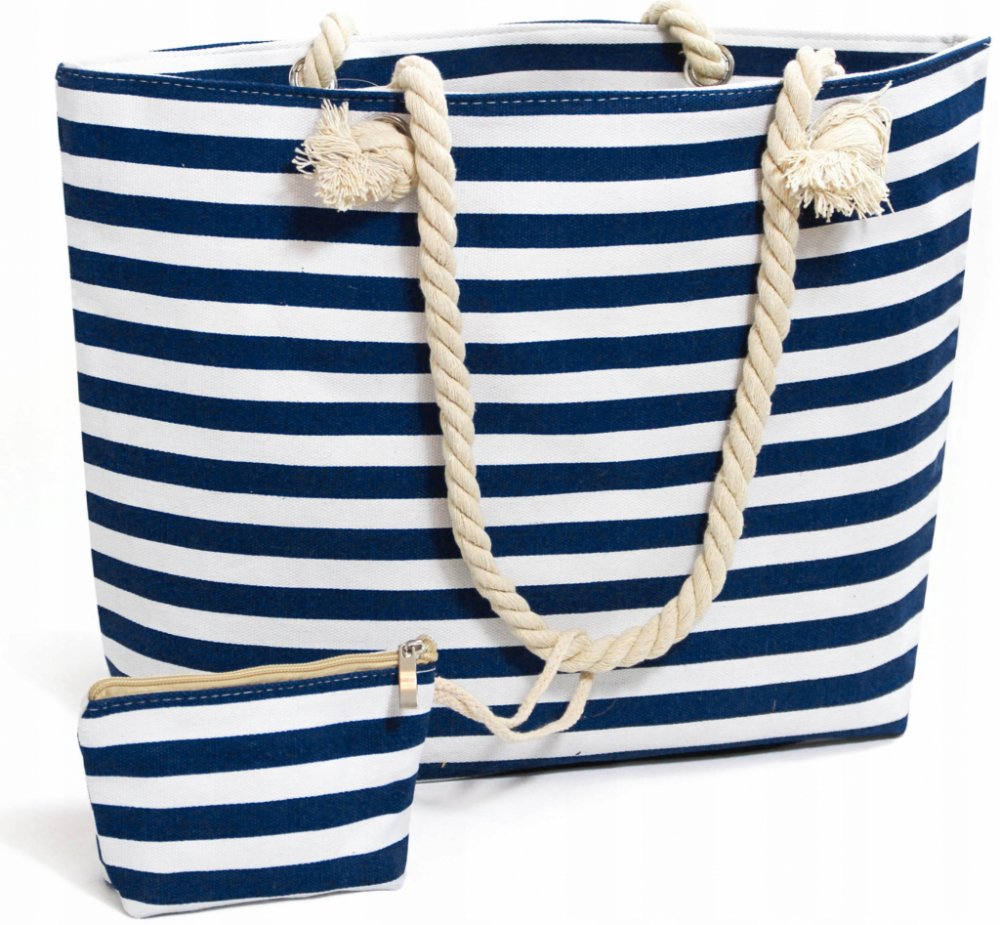 - NÁMOŘSKÝ STYL – taška je dostupná v námořnické modré s bílými pruhy, dno je z jutového materiálu. Skvěle se hodí na pláž, ale poslouží i jako taška do města nebo na sport.