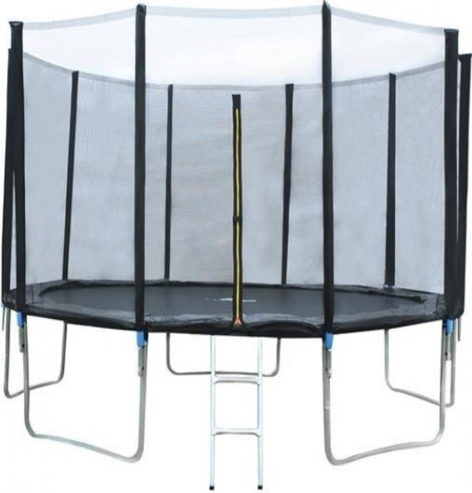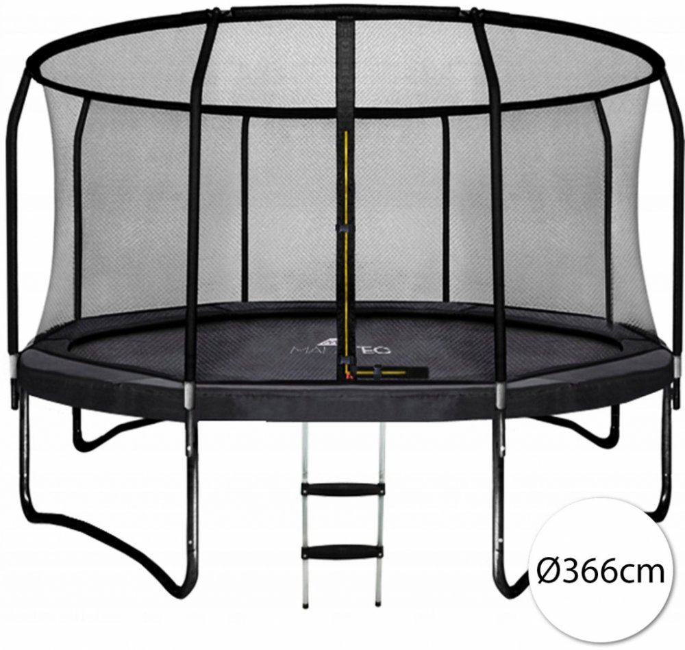 Trampolína Malatec 7509 s pevnou kovovou konstrukcí. S vnitřní síťovinou. Na zip. 4 dvojité nohy. S žebříkem.