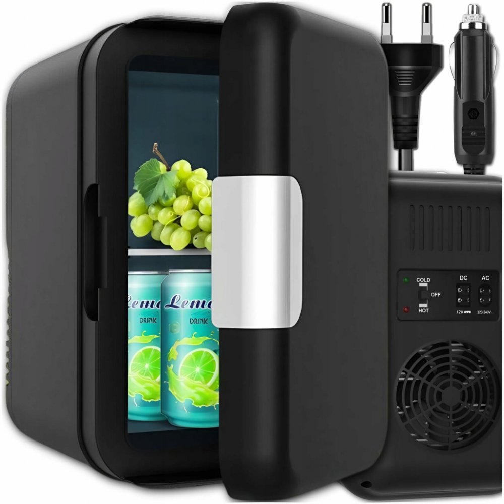 Pojme plechovky nebo lahve s nápoji o výšce až 19 cm. Chladnička je pevně uzavřena a rukojeť se západkou chrání před náhodným otevřením. Uprostřed je výsuv police a kapsa na dveřích . To umožňuje bezplatné skladování různých typů produktů. Lednička lze jej napájet ze sítě pomocí kabelu nebo ze zásuvky zapalovače. Oba elektrické kabely jsou součástí sady. Napájení tradičním způsobem znamená, že jej lze použít i v kanceláři, na zahradě či jiném místě dle individuálních představ. Pokud je však chladnička používána venku, je velmi důležité nenechávat spotřebič přímo venku a nevystavovat jej slunečnímu záření nebo vlhkosti. Pomáhá přenášet lednici speciální, šikovná rukojeť se vytahuje z pouzdra. Přístroj lze jej použít i jako ohřívač . Přepínání mezi funkcemi se provádí přepínačem na zadní straně a aktivaci daného režimu signalizuje rozsvícená dioda.
