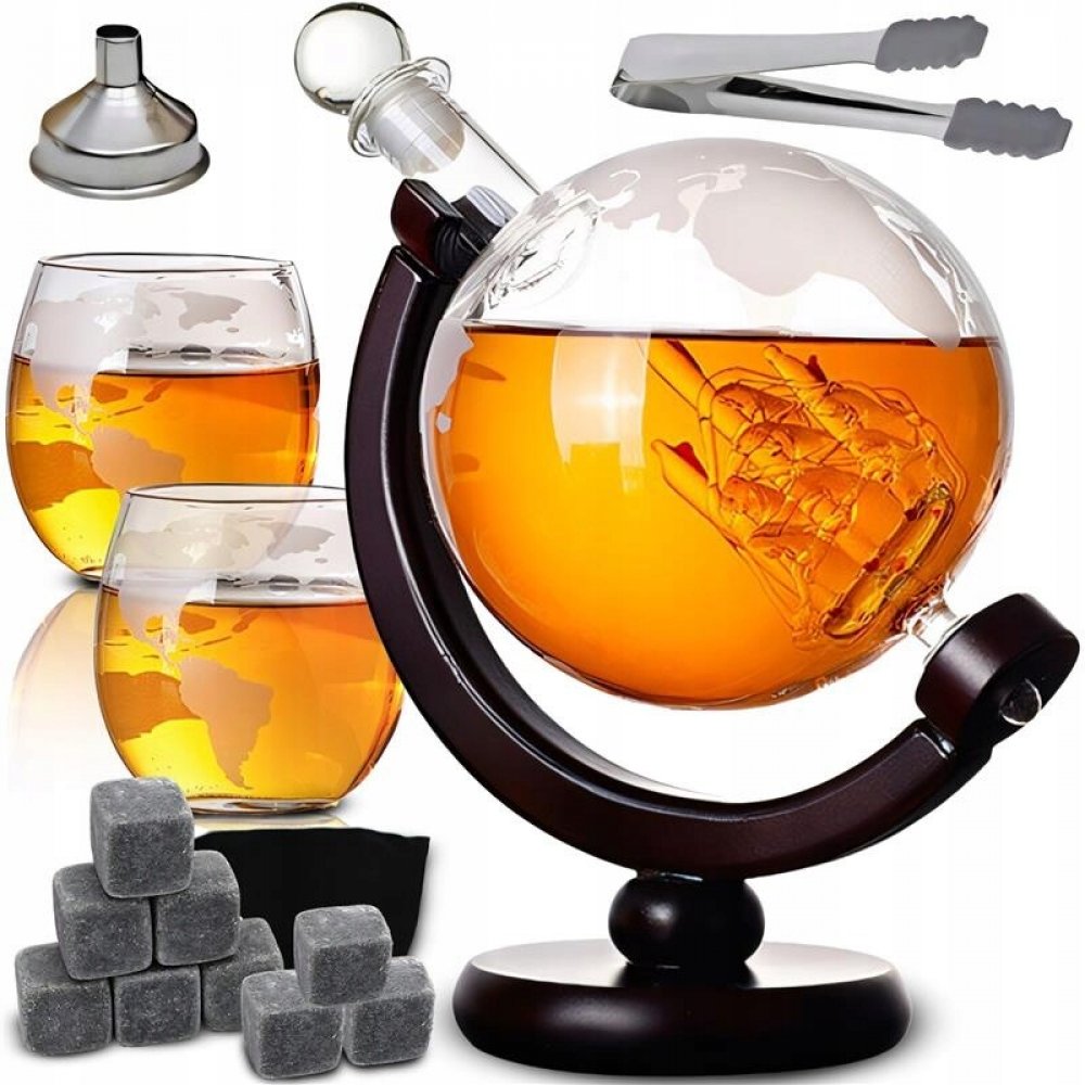 ⭐ GLOBUSOVÝ EFEKT: Karafa ve tvaru globusu s unikátním gravírováním plachetnice, na které je mapa světa, upoutá pozornost a dodává jedinečný charakter.