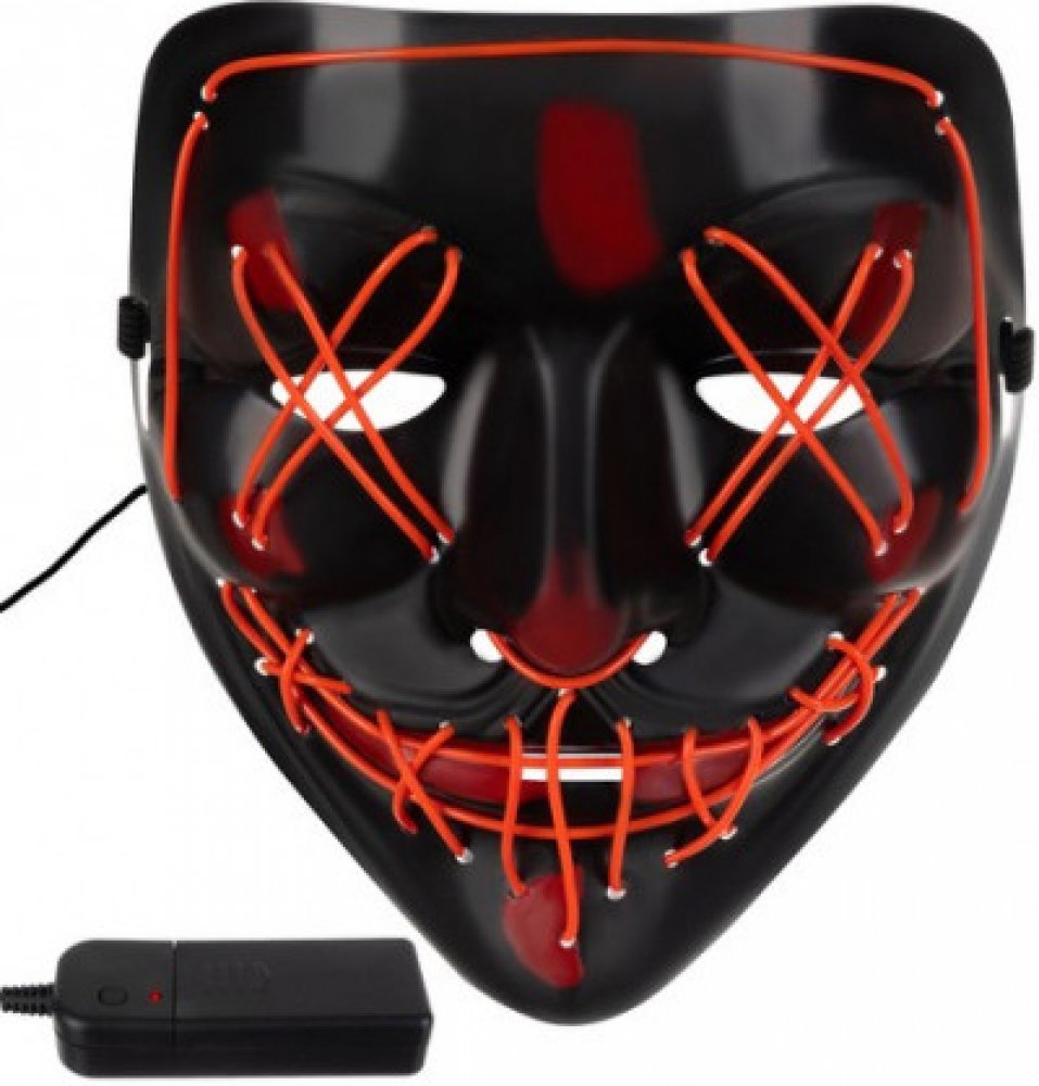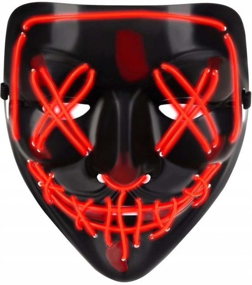 Zazářit můžete o v hororovém kostýmu s naší svítící maskou! Maska nejvíce vynikne ve tmě, protože funguje na bázi LED světla. Strašidelná je i samotná maska, jelikož má po sobě červené skvrny, které vypadají jako krev. V horní části masky se nachází pěnový polštářek, nemusíte se tedy bát, že Vám maska otlačí čelo. Na obličeji drží jednoduše pomocí gumy.