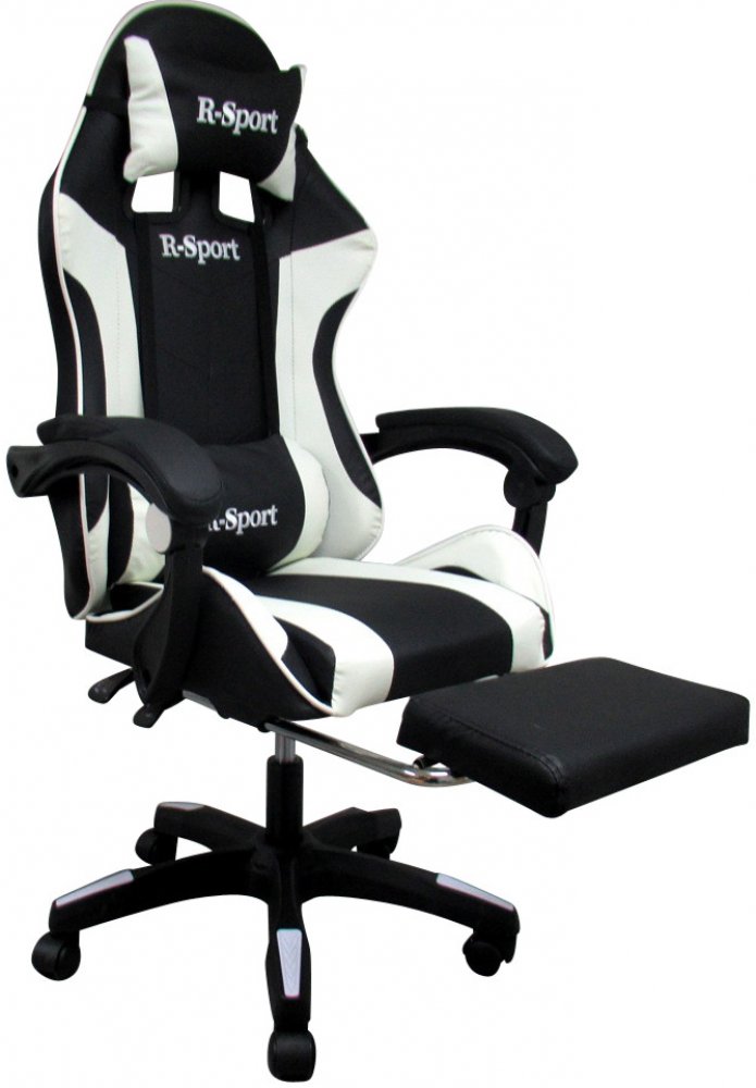 nastavení výšky sedadla nastavení sklonu opěradla bederní polštář s masážní funkcí (připojený přes USB k počítači opěrka hlavy / polštář na hlavu výsuvná, nastavitelná opěrka nohou pohodlné područky plastová kolečka - 5 ks materiál potahu: eko kůže výplň - měkká houba Sedák je vyroben ze dřeva, základna je vyrobena z plastu Špičkový píst Úhel sklonu opěradla: 135 stupňů vyšívaný logotyp (strojová nit)