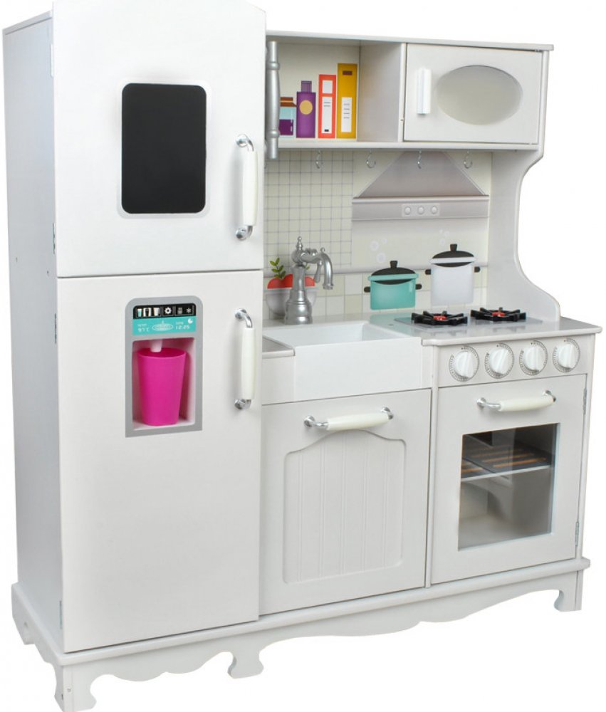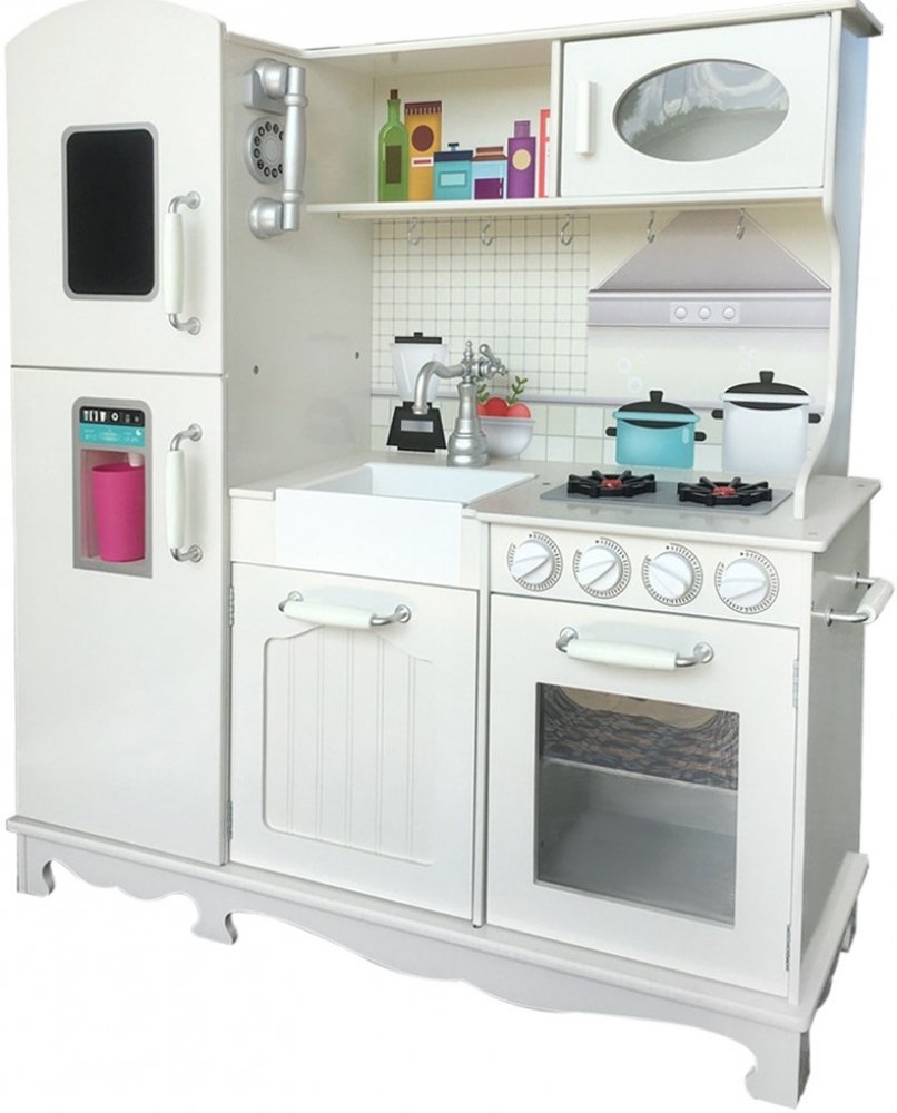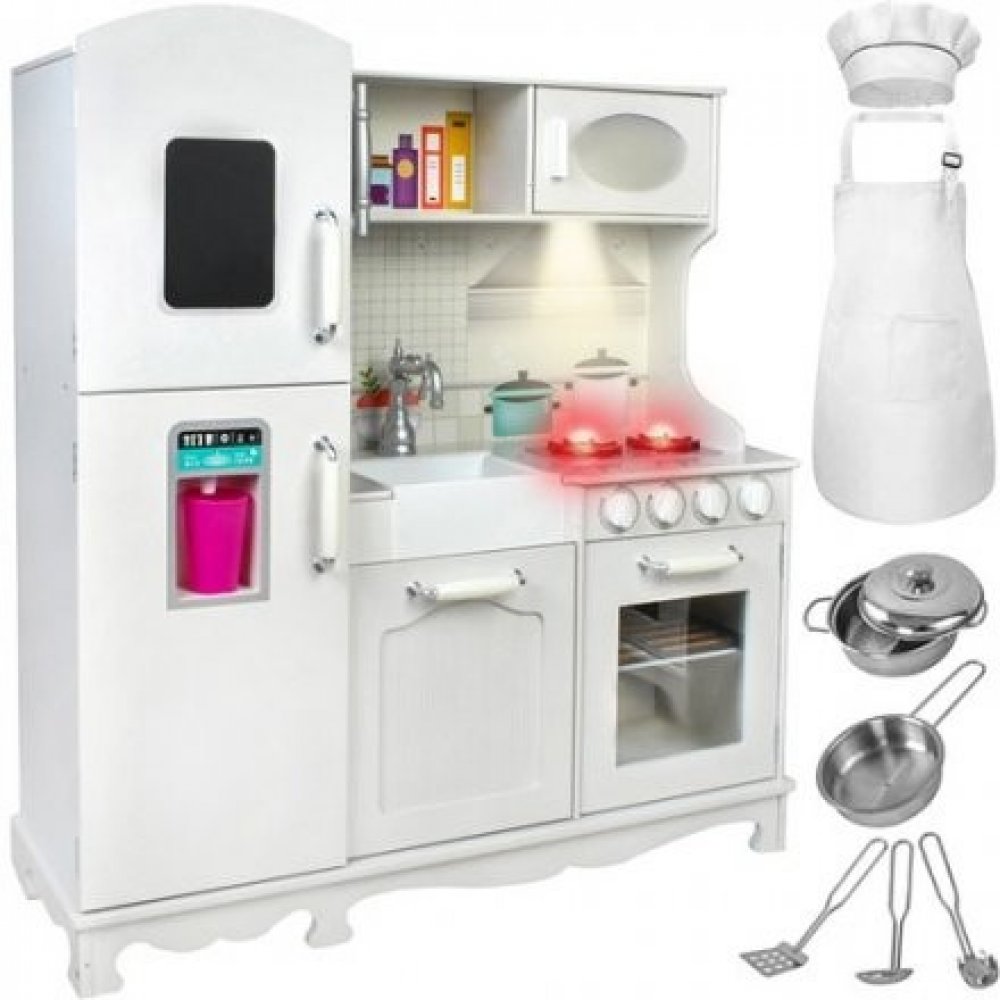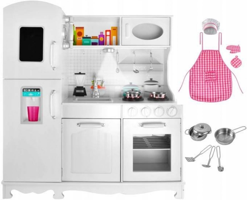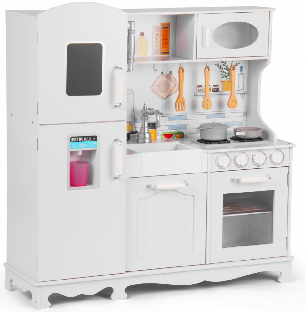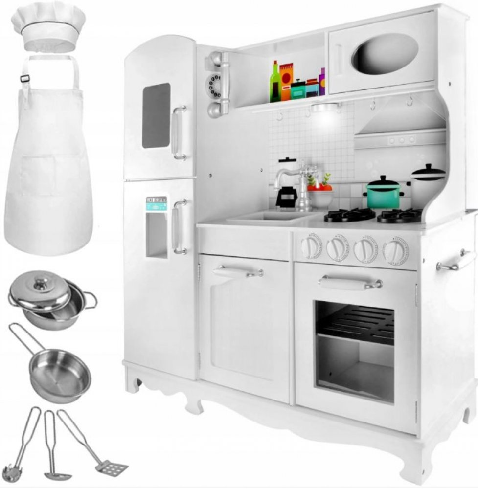Velká elegantní kuchyně se bude hodit do každého dětského pokoje. Univerzální bílá barva odkazuje na tradiční kuchyňky, které vašemu dítěti umožní ještě více zažít hru. Elegantní provedení odkazuje k vintage stylu!