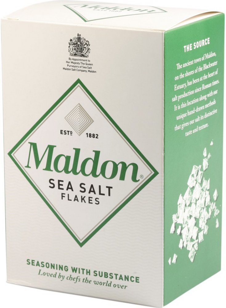 Maldonská sůl je ten skvost, o kterém tak často slyšíte od mágů britské kuchyně. Bělostná vločková sůl se sklízí u pobřeží Essexu. Tato vzácná sůl je získávána firmou Maldon Sea Salt Company. Malá rodinná firma zpracovává a distribuuje sůl od roku 1882. Mořská sůl Maldon je k dispozici pouze v omezeném množství.