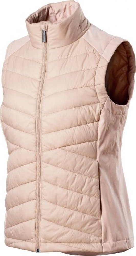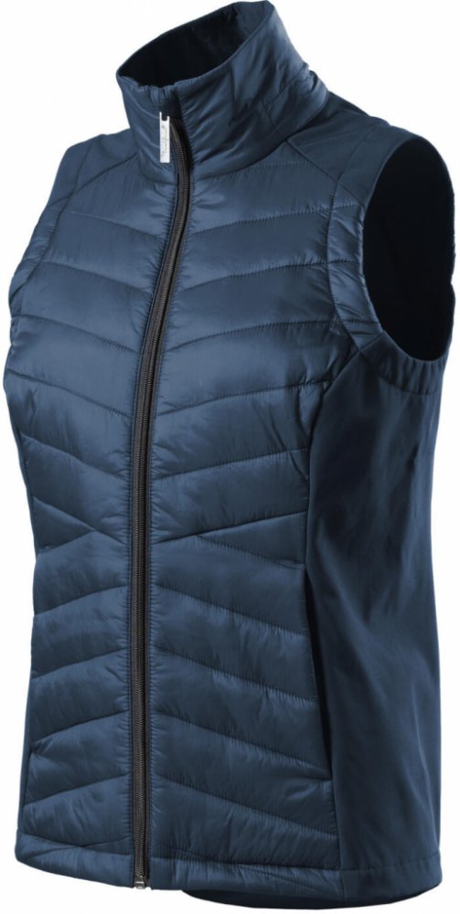 kombinace prošívaného a softshellového materiálu, střih tvarovaný bočními díly, celopropínací spirálový zip s krytkou brady, boční kapsy se spirálovým zipem, vnitřní náprsní kapsa na zip, tvarovaný a mírně prodloužený zadní díl , vstup pro branding v podšívce zadního dílu
