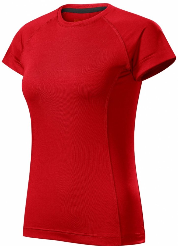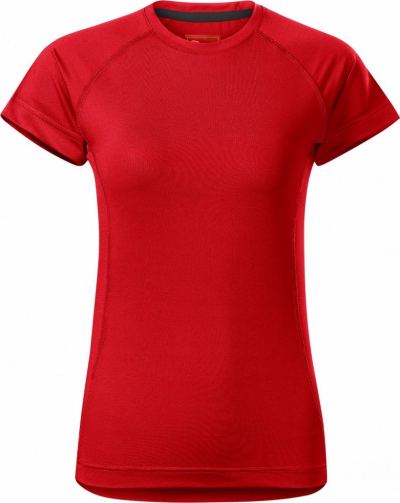 Tričko má přiléhavý dámský střih, tvarované boční díly, krátké raglánové rukávy a mírně prodloužený zadní díl, který zajišťuje pohodlí při sportu i běžném nošení. Dekorativní ploché švy zabraňují odírání a dodávají tričku moderní vzhled.