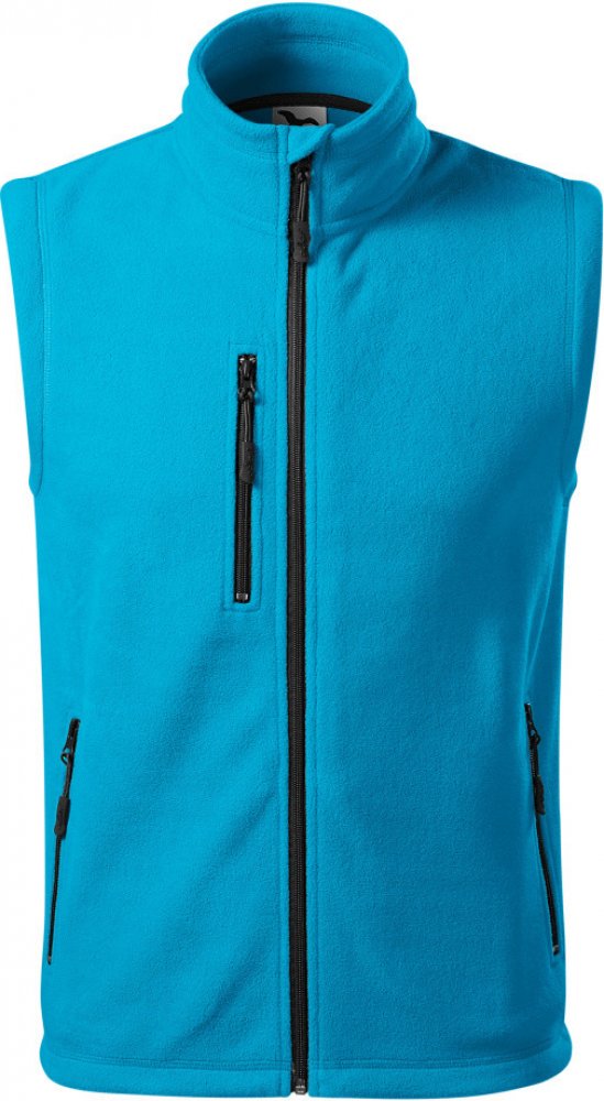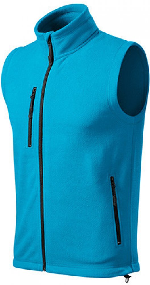Fleecová vesta z hřejivého materiálu vhodná pro výšivky a gravírování má vnitřní průkrčník začištěn páskou v barvě vrchového materiálu, celopropínací spirálový zip s krytkou brady, kapsy se spirálovým zipem, dolní lem na stažení elastickou šňůrkou, dekorativní prošití a antipillingovou úpravu z vnější strany.