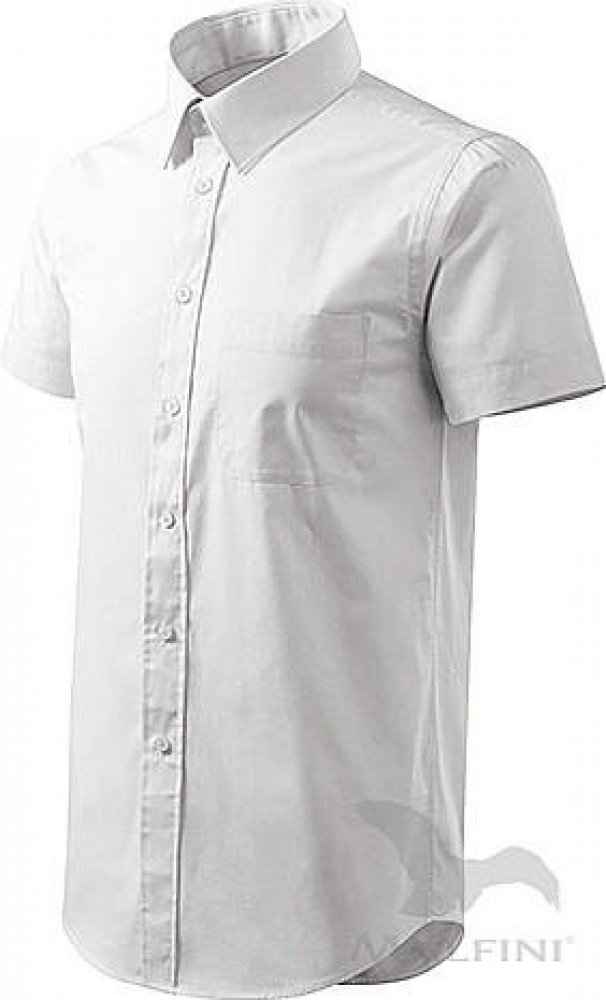 knoflíky, dvoudílný košilový límec a tvarovaný dolní kraj.