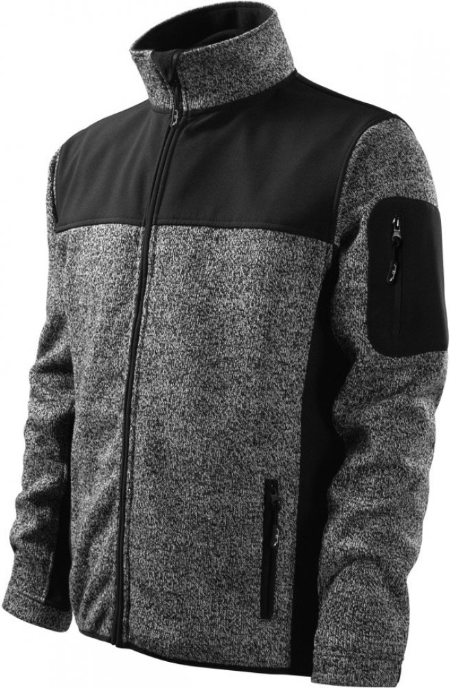Pánská volnočasová softshellová bunda. Celopropínací na zip, podložena lištou chránící i vrchní část. Kombinace dvou softshellových materiálů. Dvě dvouvýpustkové přední kapsy na zip, na levém rukávu malá kapsa na zip. Spodní lem rukávů nastavitelný suchým zipem. Spodní kraj zakončený polyesterovým proužkem. Poutko na zavěšení. Vhodná pro potisk.