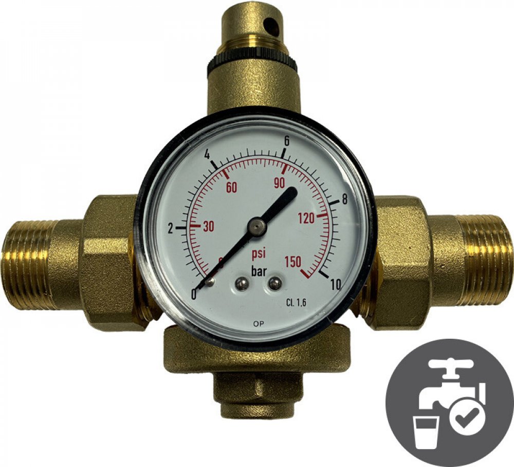 Redukční ventil EUROBRASS je vhodný pro redukci a kontrolu tlaku v rozvodech vody a vzduchu. Vstupní tlak do maximálního tlaku 25 barů je možné nastavit na výstup 0,5 - 6 baru. • materiál: mosaz • se šroubením s vnějším závitem • výstupní tlak: 0,5 - 6 bar • maximální provozní teplota: 80°C • médium: voda, vzduch • včetně manometru
