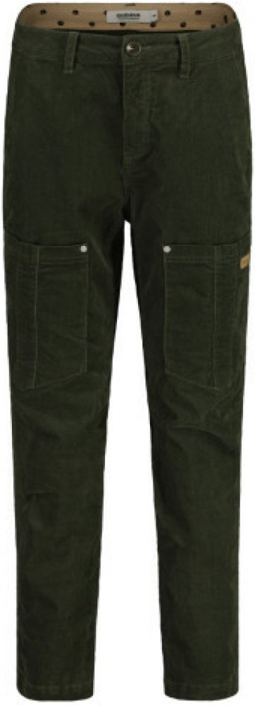 Kalhoty mají velké cargo kapsy na stehnech, boční kapsy a zadní kapsy, které poskytují dostatek úložného prostoru. Sametově jemný povrch z 98% bio bavlny dodává kalhotám unikátní vzhled a příjemný pocit na dotek.