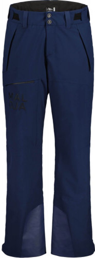 Pánské kalhoty, se kterými si užijete každou jízdu! Kalhoty jsou zateplené izolací Primaloft Bio, která poskytuje vysoký tepelný komfort. Kalhoty jsou zároveň díky vysokému vodnímu sloupci odolné vůči vodě a větru. V pase jsou poutka na suchý zip, se kterými si lehce přizpůsobíte velikost. Bederní strana je vyvýšená. Nohavice jsou vybavené ochrannými prvky s možností rozšíření pomocí zipu. Kalhoty jsou tak odolné vůči rozseknutí a lehce je přetáhnete přes lyžáky. Po bocích je odvětrávání na zip, které napomáhá k lepší cirkulaci vzduchu. Kalhoty jsou v tmavě modré barvě a na přední straně je černý vyšitý nápis Maloja. Hlavní přednosti: Vodní sloupec 10.000 mm Tepelná izolace Primaloft Bio Odvětrávání na zip Regulace velikosti v pase