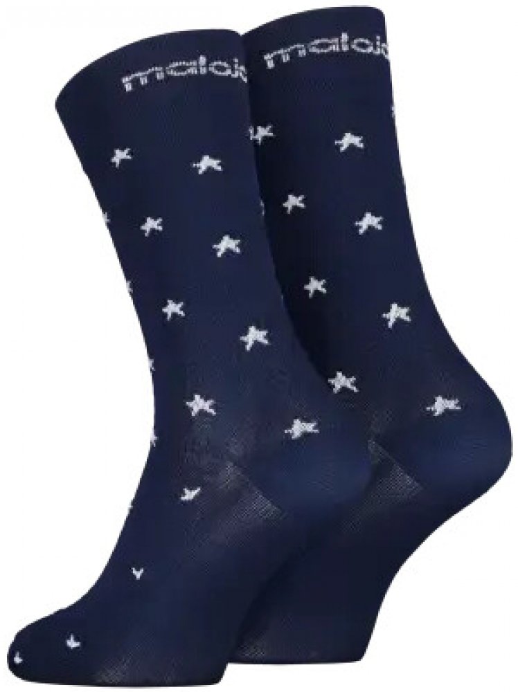 Sportovní ponožky v moderní délce do půli lýtek, z rychle schnoucího materiálu, s celoplošným potiskem hvězdiček a nápisem Maloja. Díky měkkému a velmi pružnému materiálu se velmi příjemně nosí.