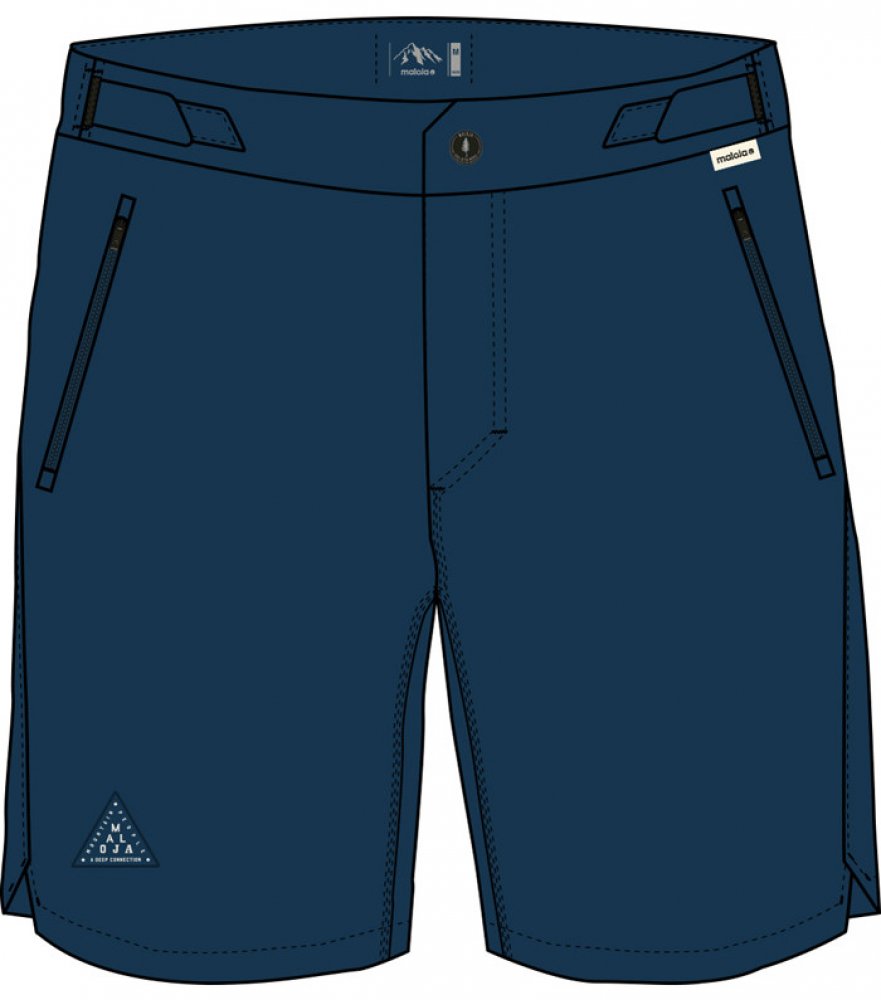 Šortky GallasM. jsou vyrobeny z mírně pružného, z části recyklovaného, materiálu opatřeného ekologickou vodě odpudivou úpravou. Pomocí suchých zipů je možné přizpůsobit šířku v pase a dvě přední kapsy na zip umožňují bezpečné uložení všech nezbytností. Nášivka Maloja Mountain na pravé nohavici a nápis Maloja vzadu na dolních okrajích nohavic.