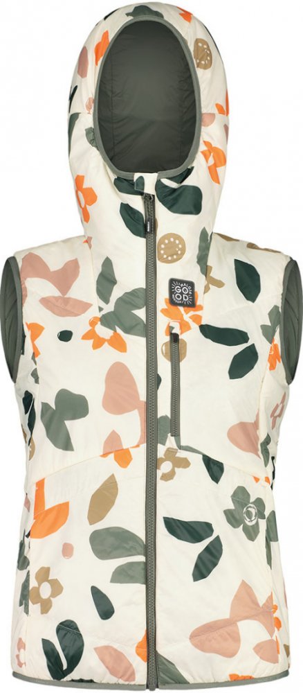 Pro výrobu dámské funkční vesty Maloja ZinkenM. z extrémně lehkého a větruodolného Superfine Nylonu Eco se sbírá odpad ze stříhaných syntetických materiálů, který vzniká při výrobě. Vytříděný a odborně zpracovaný odpad se mění na novou surovinu zvanou cambium® UP, která