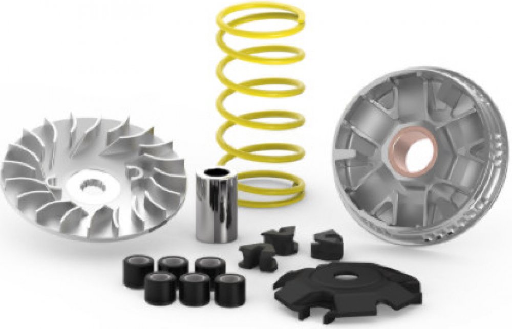 Variátor Malossi Multivar 2000, Yamaha Delight, RS 125 od roku 2017 - Variátor Malossi Multivar je vhodný pro skútry, jak seriové, tak upravené. Poskytne plynulý přenos výkonu a kroutícího momentu na zadní řemenici. Osvědčený výrobek od Malossi, zaručuje vysokou kvalitu a dlouhou životnost. V sadě je variátor, sada válečků po 6ks 20x17 - 8g, sada 3ks vodítek, žlutá kontrastní pružina a polořemenice.