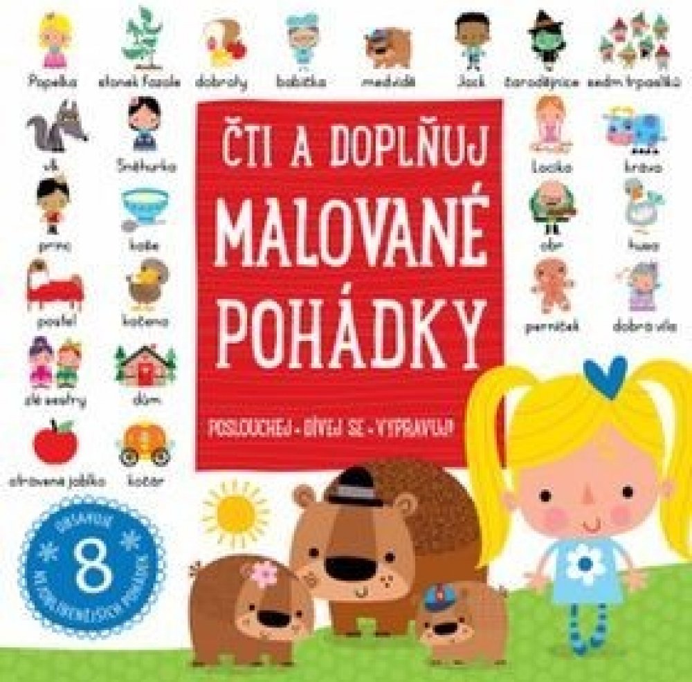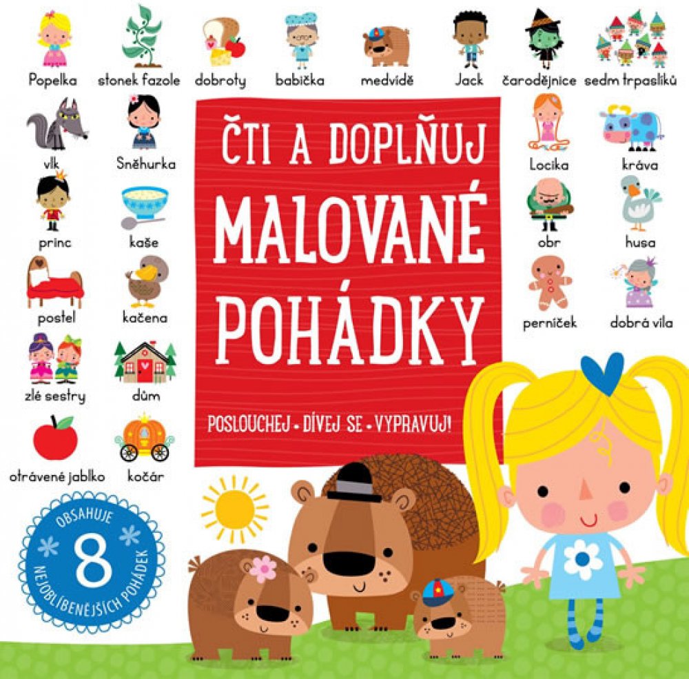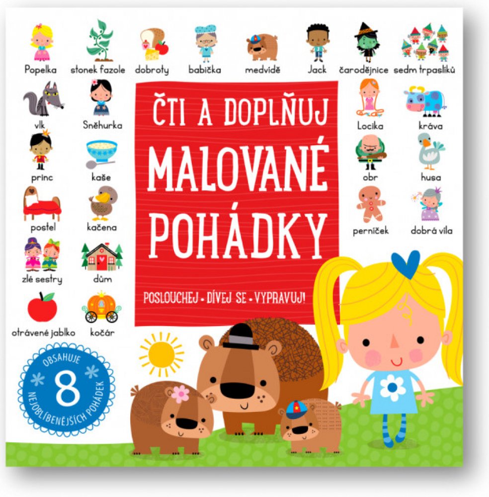 Rádi byste v dětech probudili zájem o čtení? V této knížce najdete osm pohádek v krásném ilustrovaném zpracování, které kombinuje text a obrázky a povzbuzuje tím děti ke čtení.Pohádky o Popelce, Sněhurce, Ošklivém káčátku nebo Mášence a třech medvědech provází snad každé dítě. Znají je skoro všichni. Připomeňte si osm populárních i méně známých pohádek v této okouzlující sbírce s ilustrovanými klíčovými slovy, která povzbuzují děti při čtení. Díky jednoduchému textu a překrásným ilustracím jsou tyto pohádky skvělou společnou četbou pro dospělé a jejich děti. Zpříjemněte si chvíle nejen před spaním.Kniha má pěnovou obálku. Hodí se pro předškoláky a začínající čtenáře.