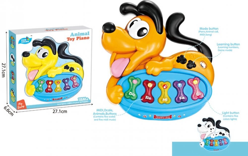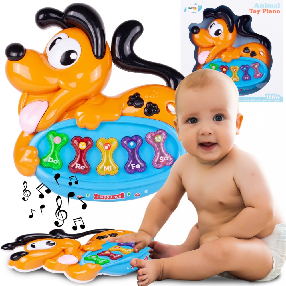 Piano ve tvaru roztomilého pejska je ideální hračka pro malého hudebníka, který se chce naučit pravidla fungování hudebních nástrojů! Vaše dítě může strávit mnoho hodin skvělou zábavou a učením číslic, tvarů, barev, škály a zvuků zvířátek a hudebníků!