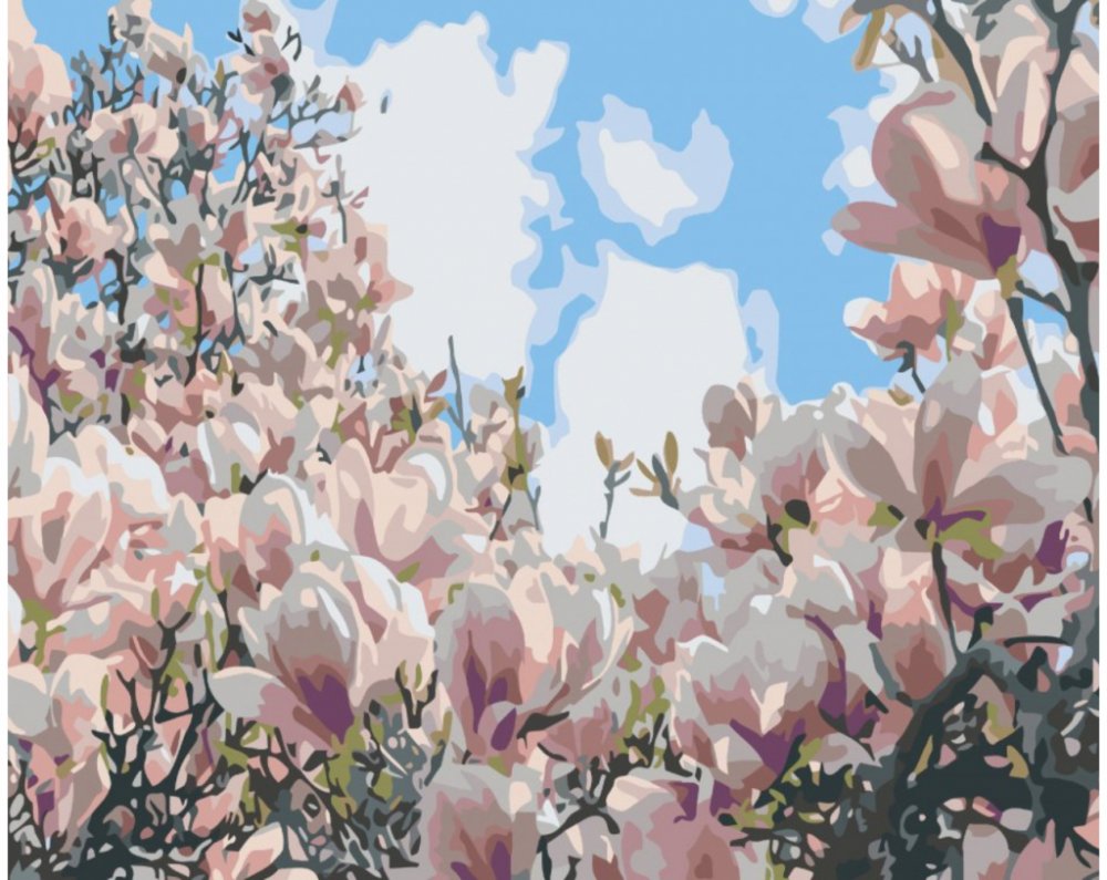 MALUJEŠ Malování podle čísel KVETOUCÍ MAGNÓLIE Rozměr 30 x 40 cm Rámování vypnuté plátno na rám