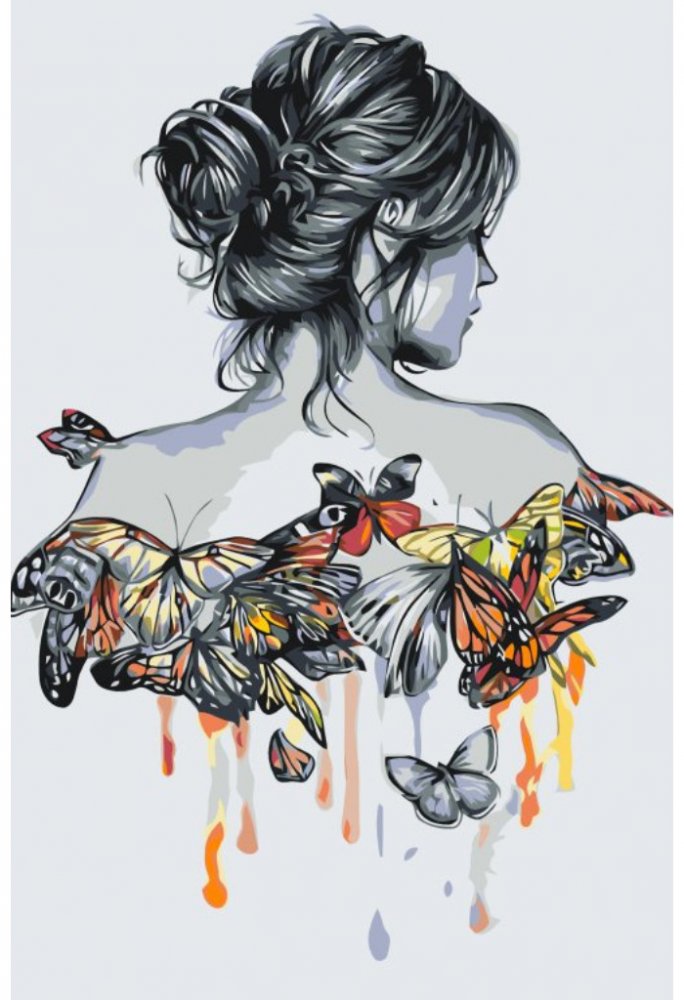 MALUJEŠ Malování podle čísel MOTÝLÍ ŽENA Rozměr 60 x 80 cm Rámování vypnuté plátno na rám