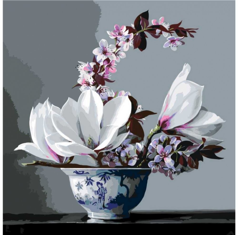 MALUJEŠ Malování podle čísel PIETER WAGEMANS MAGNÓLIE A JARNÍ KVĚTY Rozměr 50 x 50 cm Rámování vypnuté plátno na rám
