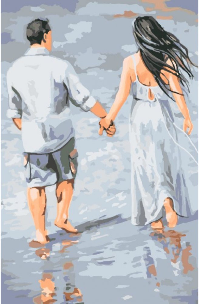 MALUJEŠ Malování podle čísel ZAMILOVANÝ PÁR NA PLÁŽI Rozměr 40 x 60 cm Rámování vypnuté plátno na rám