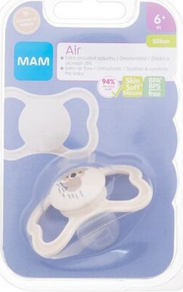 MAM Air je velmi šetrný k dětské pokožce díky extra velkým větracím otvorům v límci dudlíku, které umožňují lepší proudění vzduchu kolem úst, a tím pomáhají zmenšit podráždění pokožky způsobené zachycováním slin.