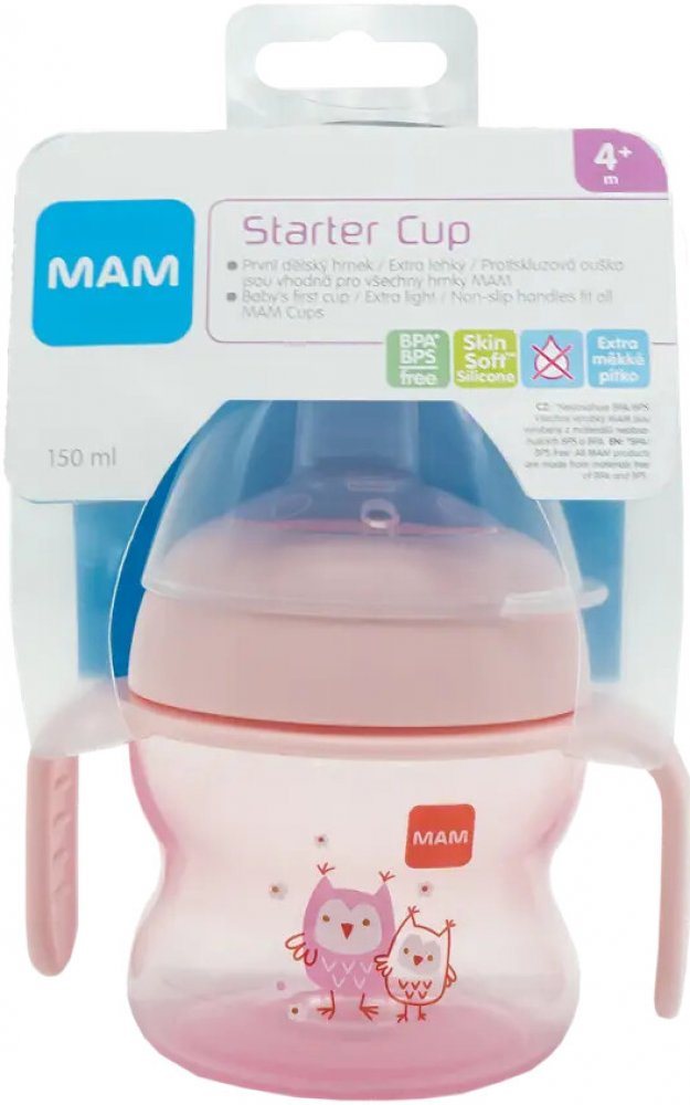 Učící hrníček pro plynulý přechod k samostatnému pití z běžné sklenice. Značka MAM přichází s patentovaným konceptem ventilu, kdy se nevylévací pítko snadno přemění na volně průtokové odpojením ventilu. Vše volíte podle schopností dítěte. Hrnek je lehký a uprostřed zakřivený, aby perfektně zapadl do dětské dlaně. Má také odnímatelné praktické protiskluzové držáky pro pohodlné uchopení. Ideální pomůcka od ukončeného čtvrtého měsíce. MAM ve spolupráci s pediatry a dětskými stomatology vyrábí kvalitní produkty pro děti kojeneckého a batolecího věku.