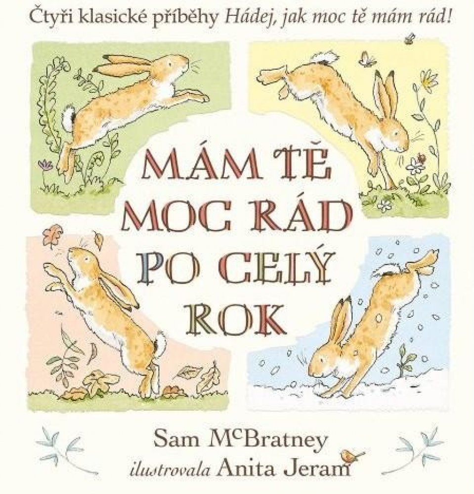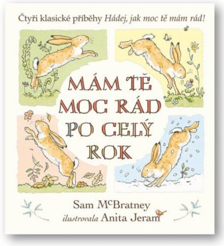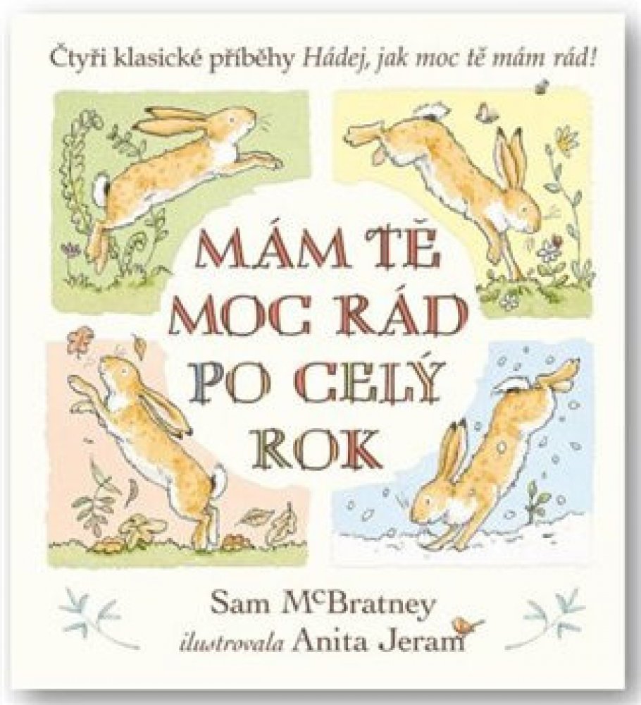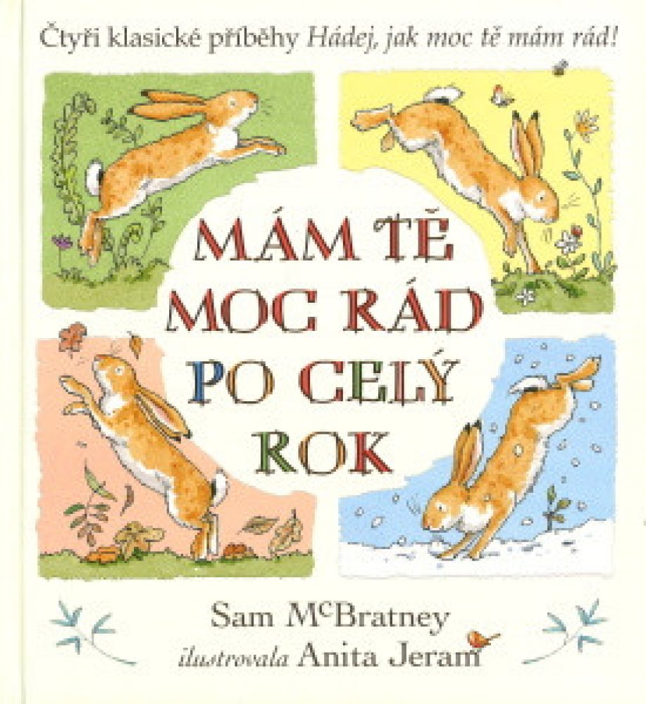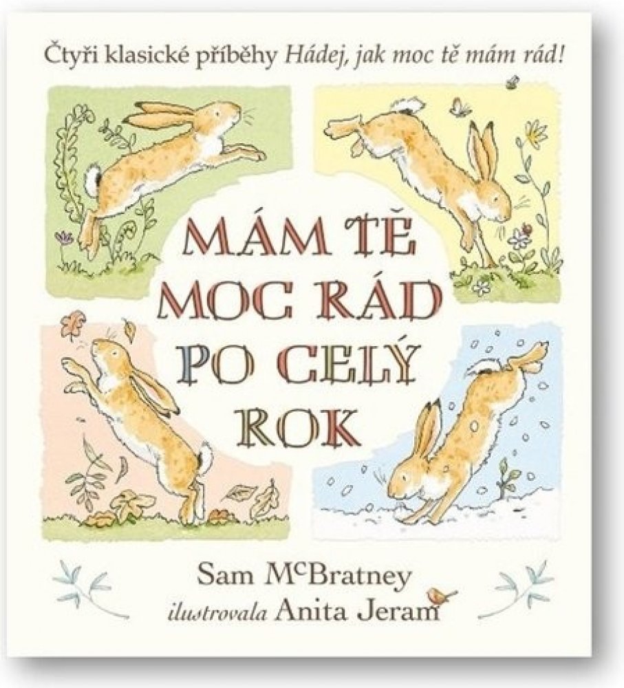 Malý oříškově hnědý zajíček i jeho tatínek si spolu rádi hrají a smějí se po celý rok. Čtyři příběhy z průběhu celého roku od autora Sama McBratneyho se skvěle doplňují s ilustracemi od Anity Jeram. Oříškově hnědí zajíčci známí z dětské klasiky Hádej, jak moc tě mám rád! jsou oblíbení u čtenářů mnoha generací po celém světě. Mám tě moc rád po celý rok je sbírka jejich příběhu ze čtyř ročních období, při nichž sledujeme dva zajíčky, jak zažívají nejrůznější dobrodružství, a hlavně - mají se moc rádi.