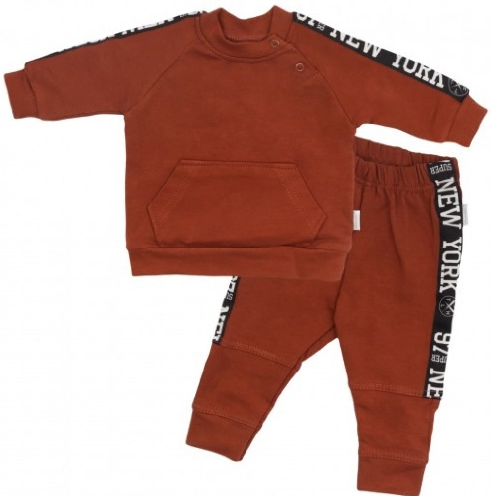 Mamatti Dětská tepláková souprava zapínání na boku Baby Fox hnědá