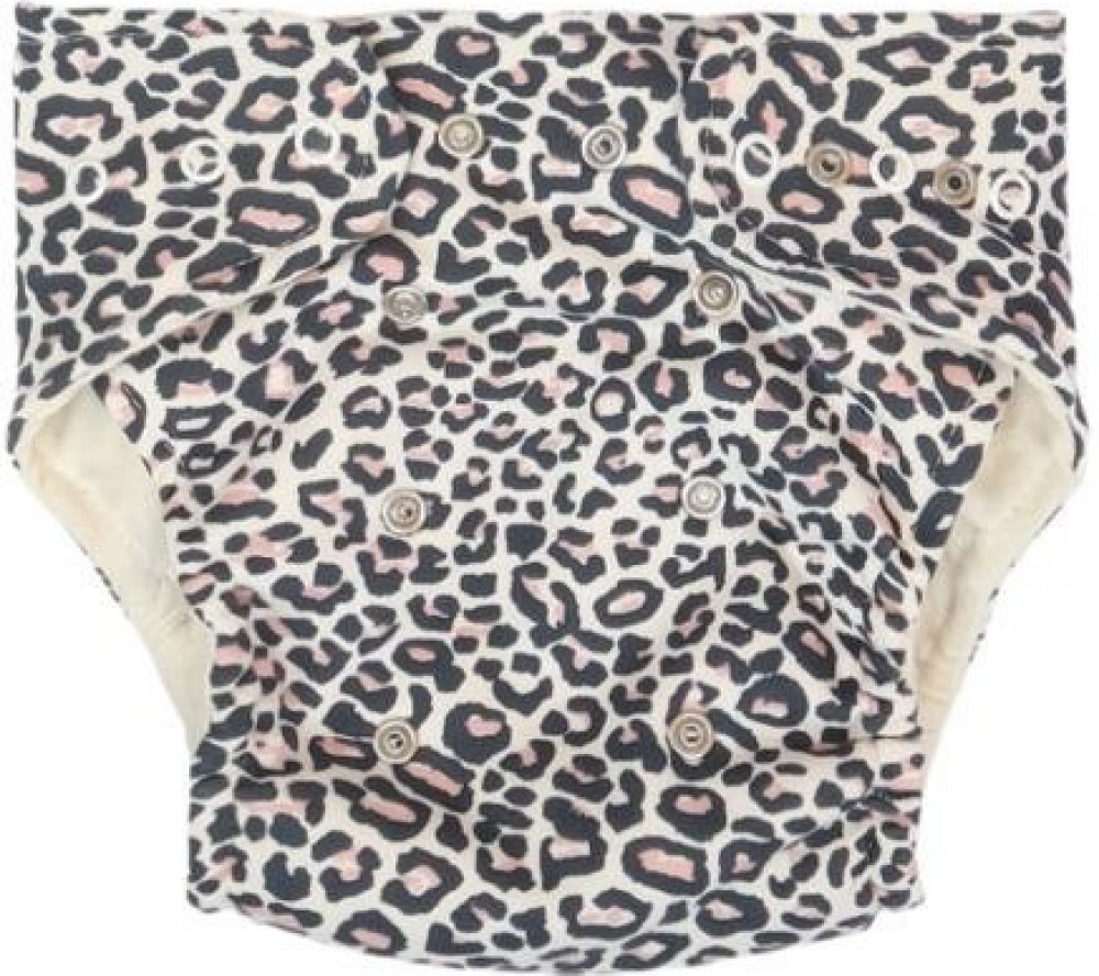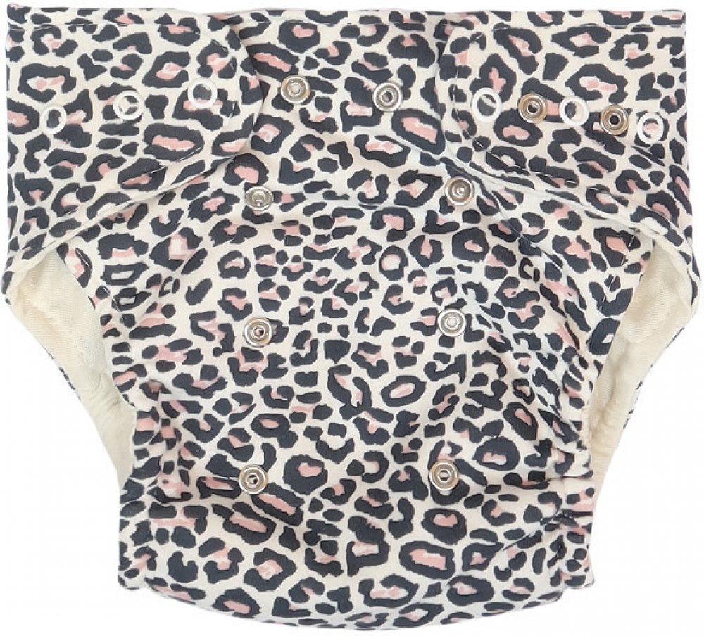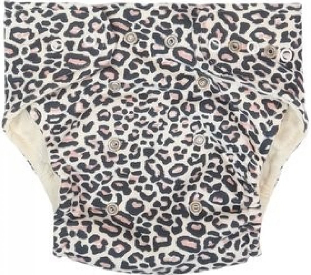 Kalhoty maji na zadečku a po bocích všitou gumičku, která zajištuje neprotečení vložené plenky.